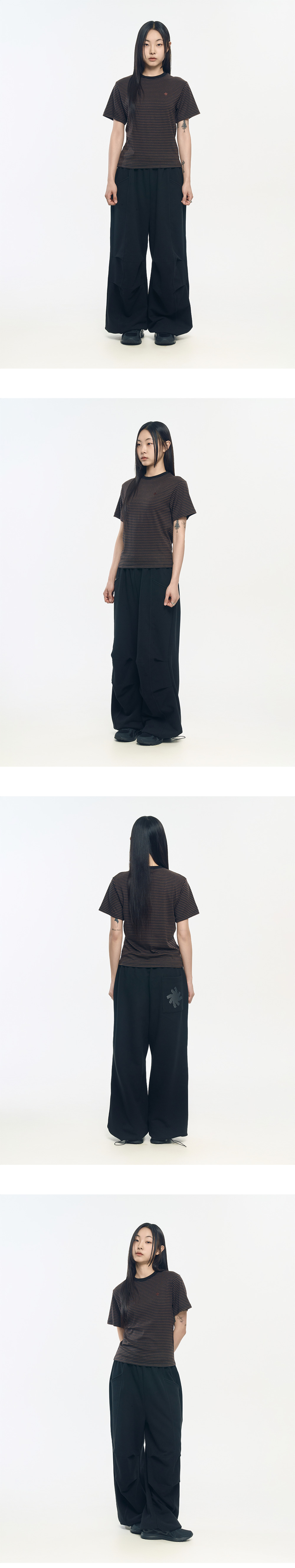 SLOW RECORD HOUSE Double Pintuck Wide Sweat Pants Black