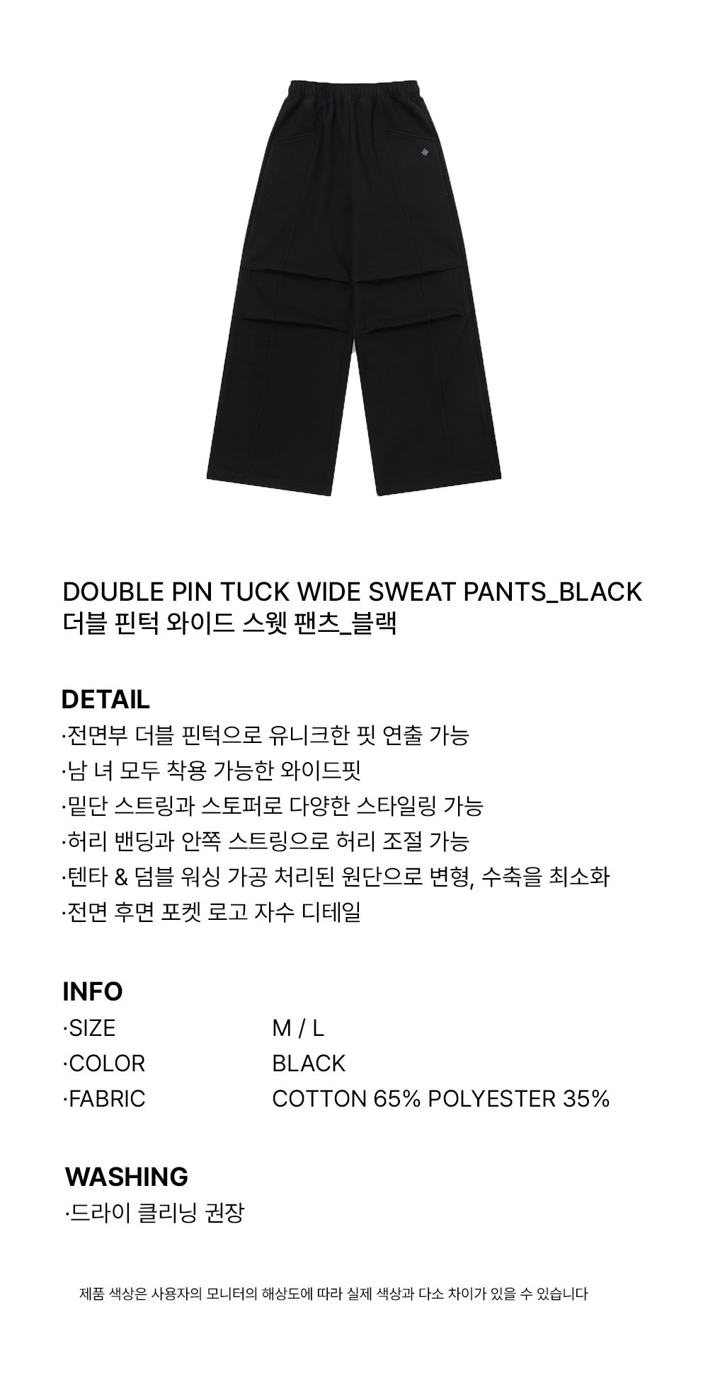 슬로우 레코드 하우스 더블 핀턱 와이드 스웻 팬츠 블랙