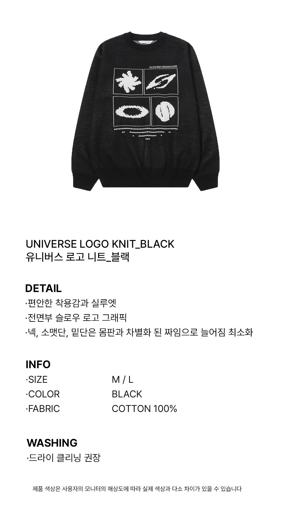 슬로우 레코드 하우스 유니버스 로고 니트 블랙