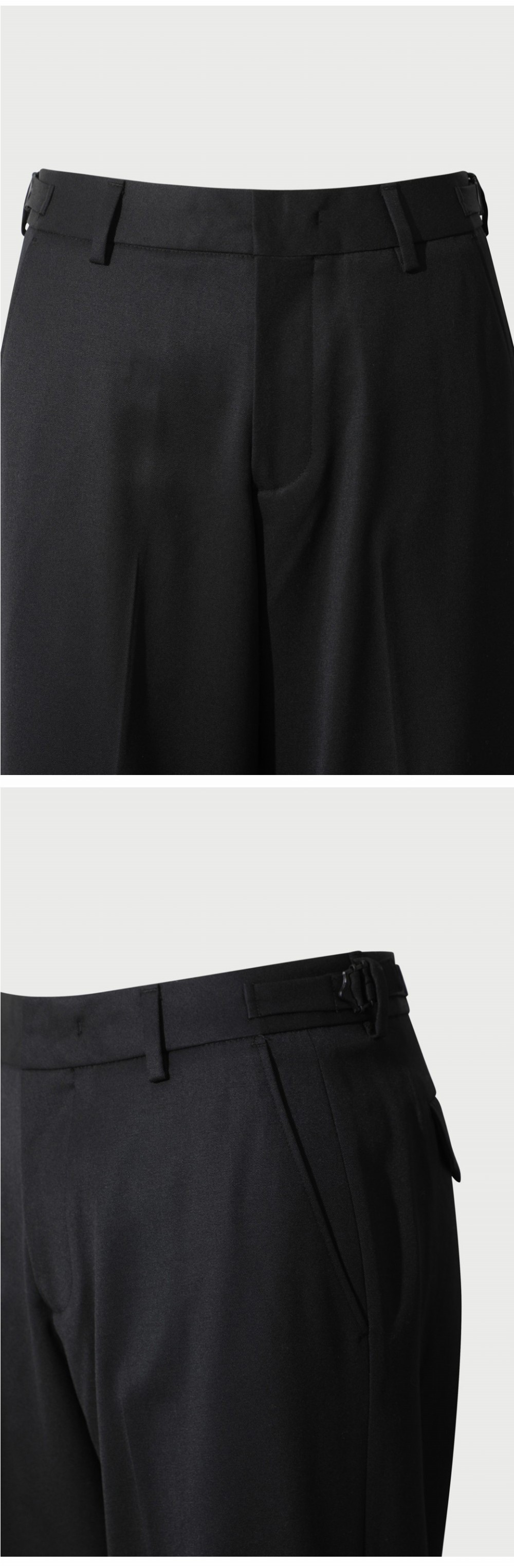 이로 솔리드 와이드 버클 탭 팬츠 그레이