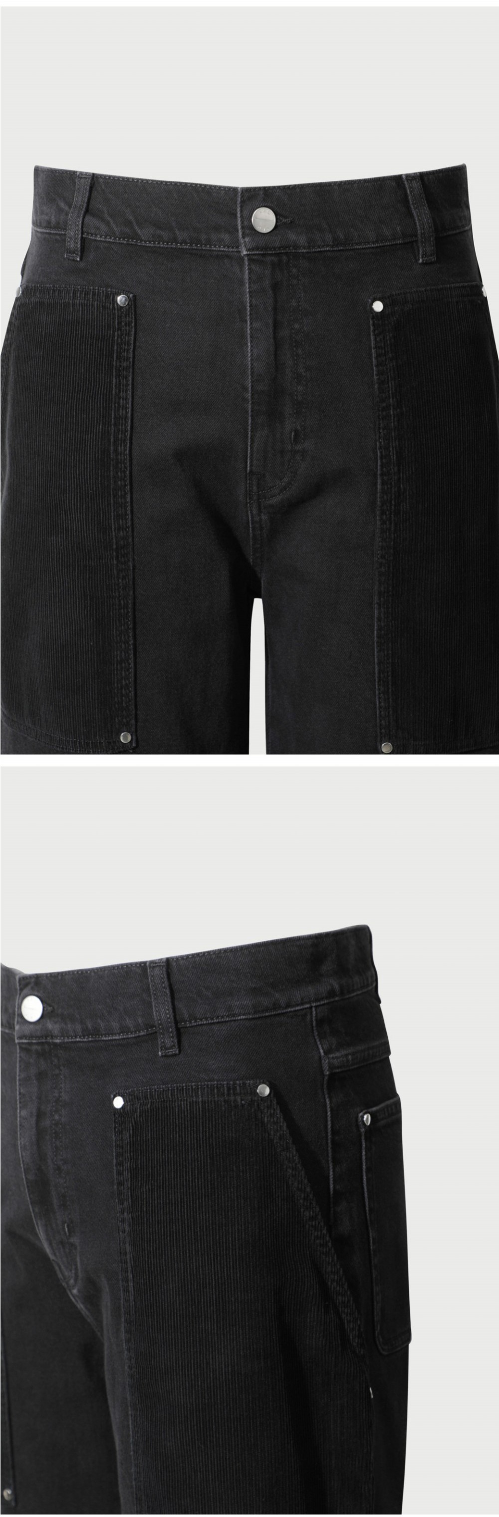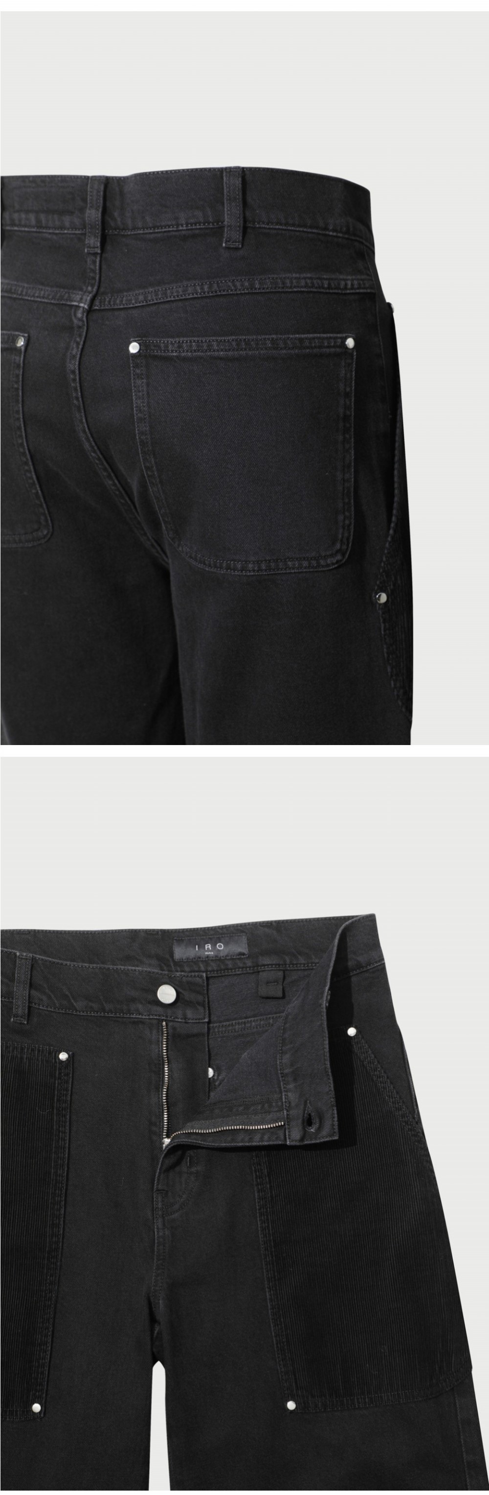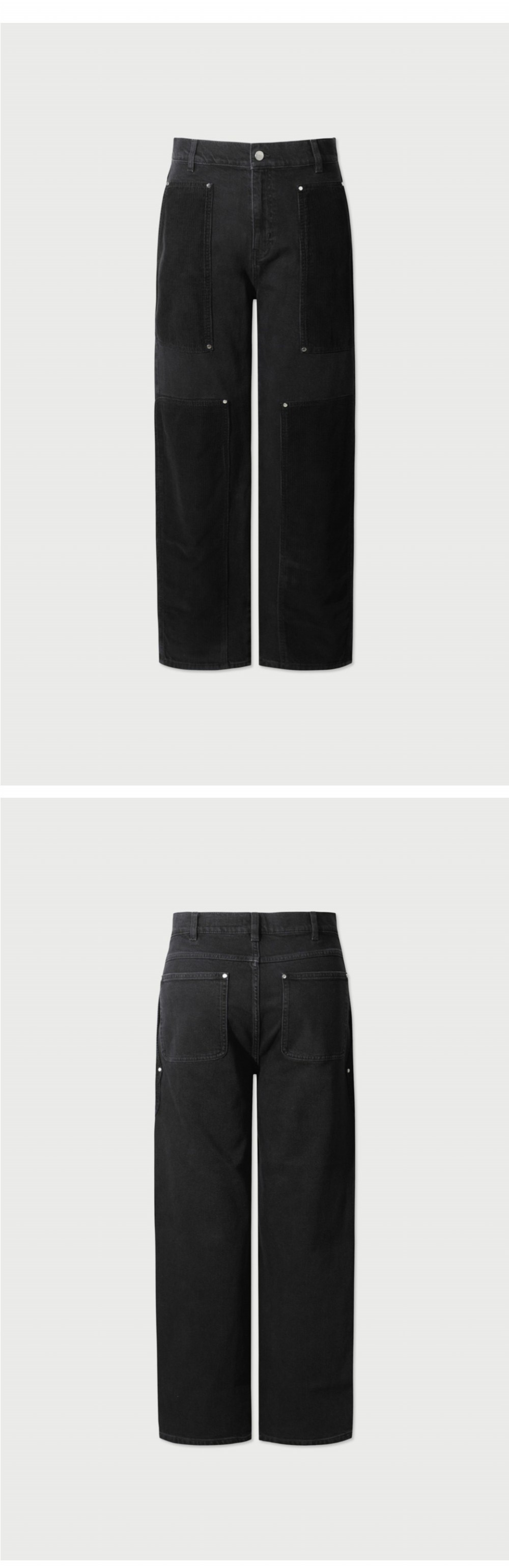 이로 엘리사스페 코듀로이 배색 카펜터 코튼 팬츠 블랙