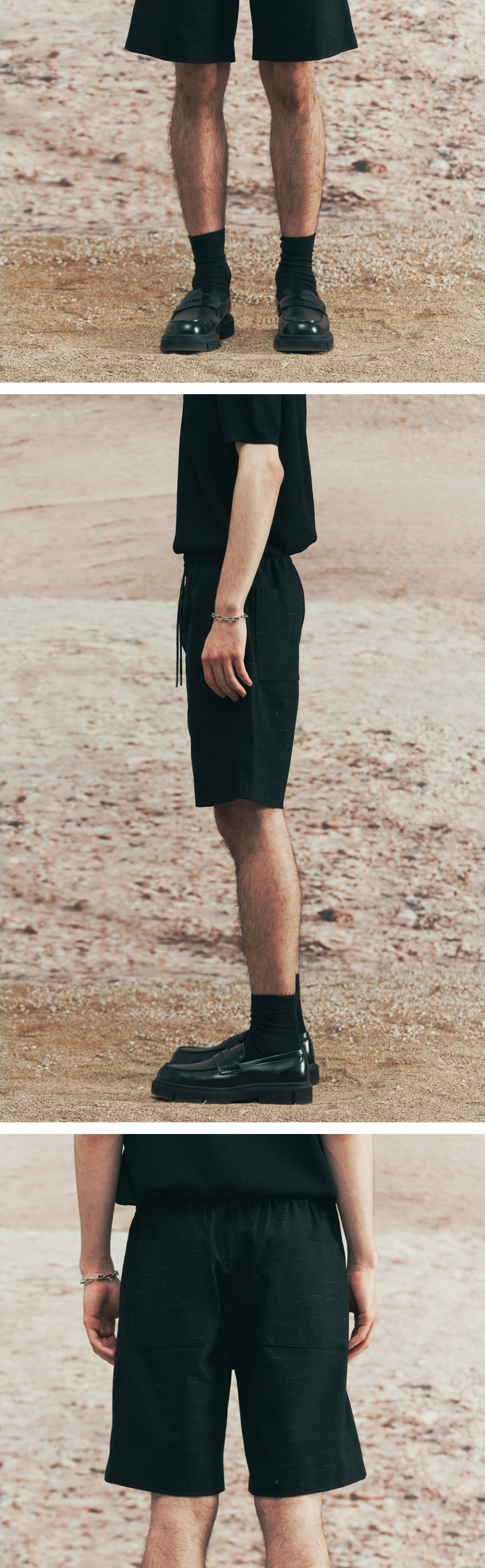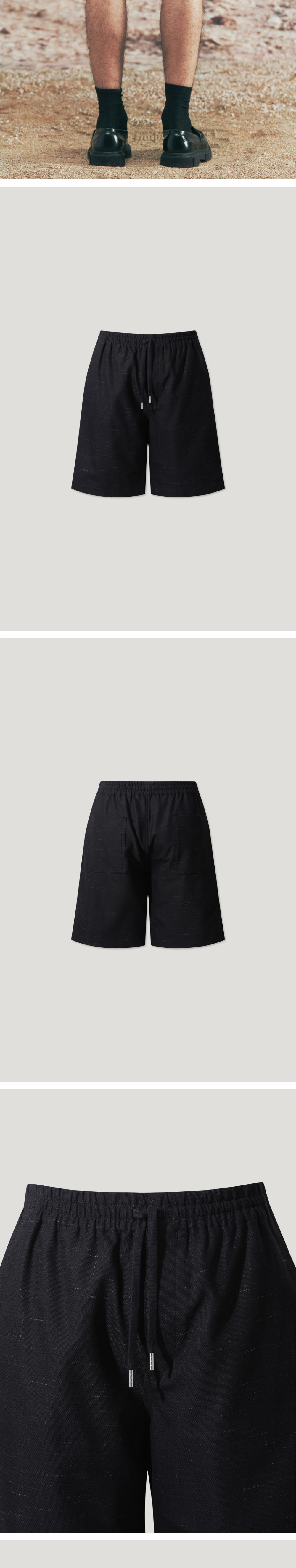 이로 핀 코튼 밴딩 반바지 블랙
