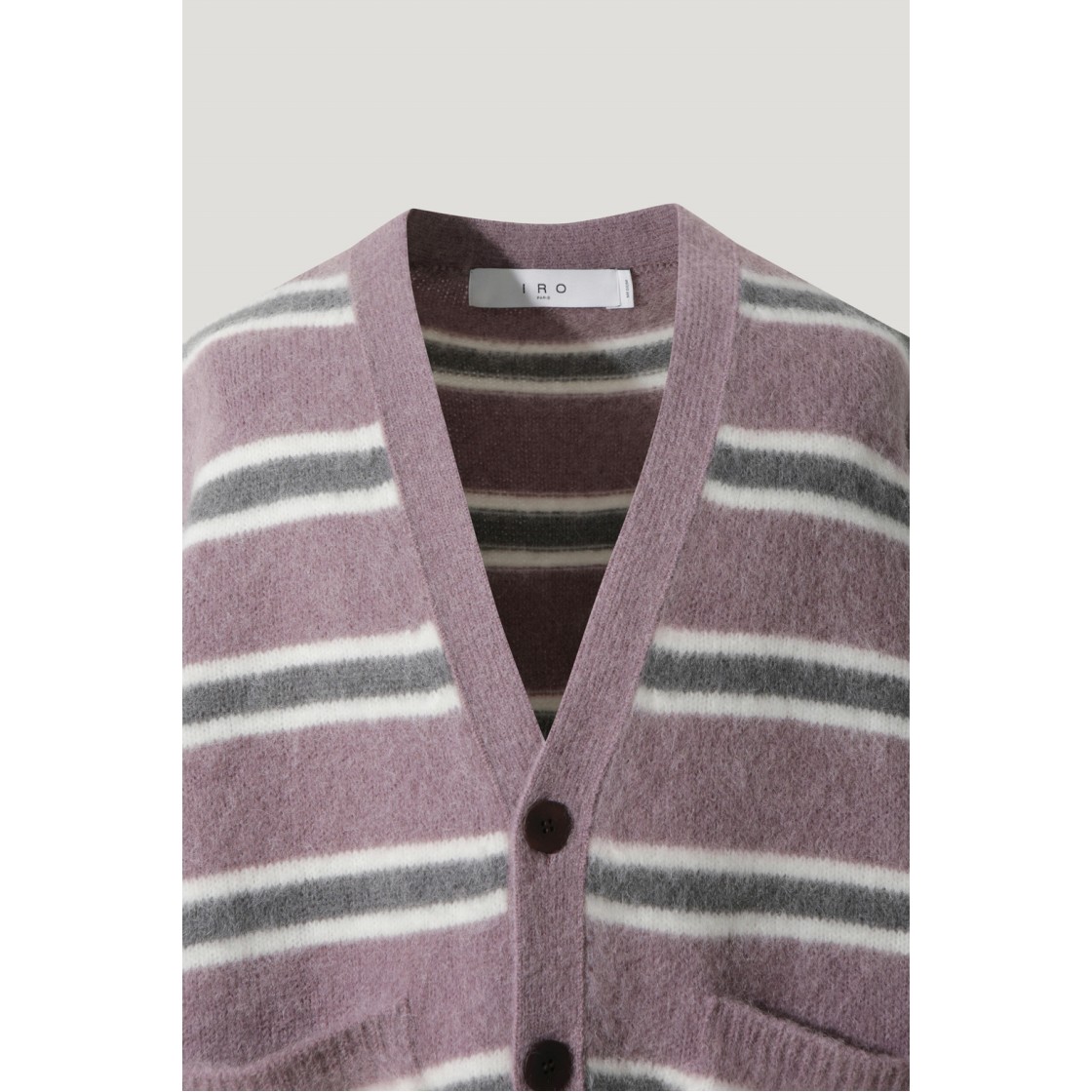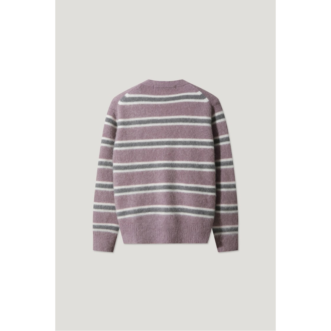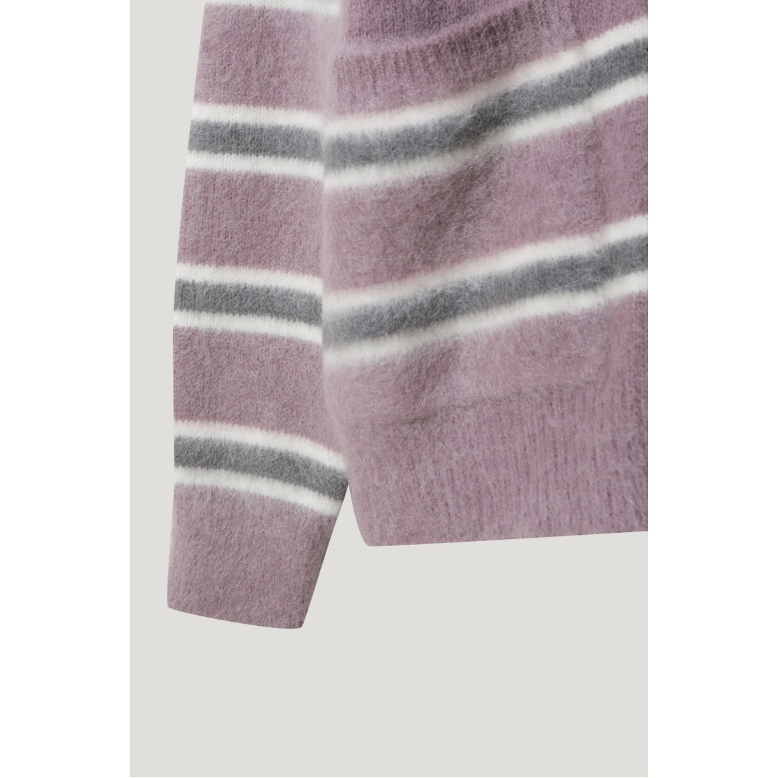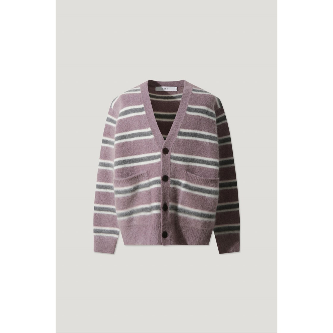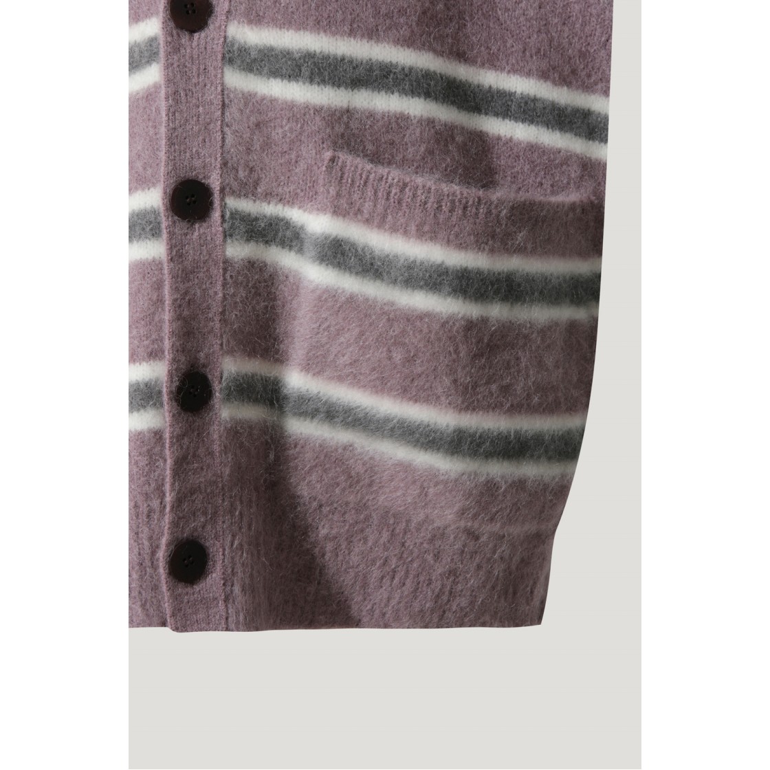 이로 모헤어 스트라이프 니트 가디건 퍼플
