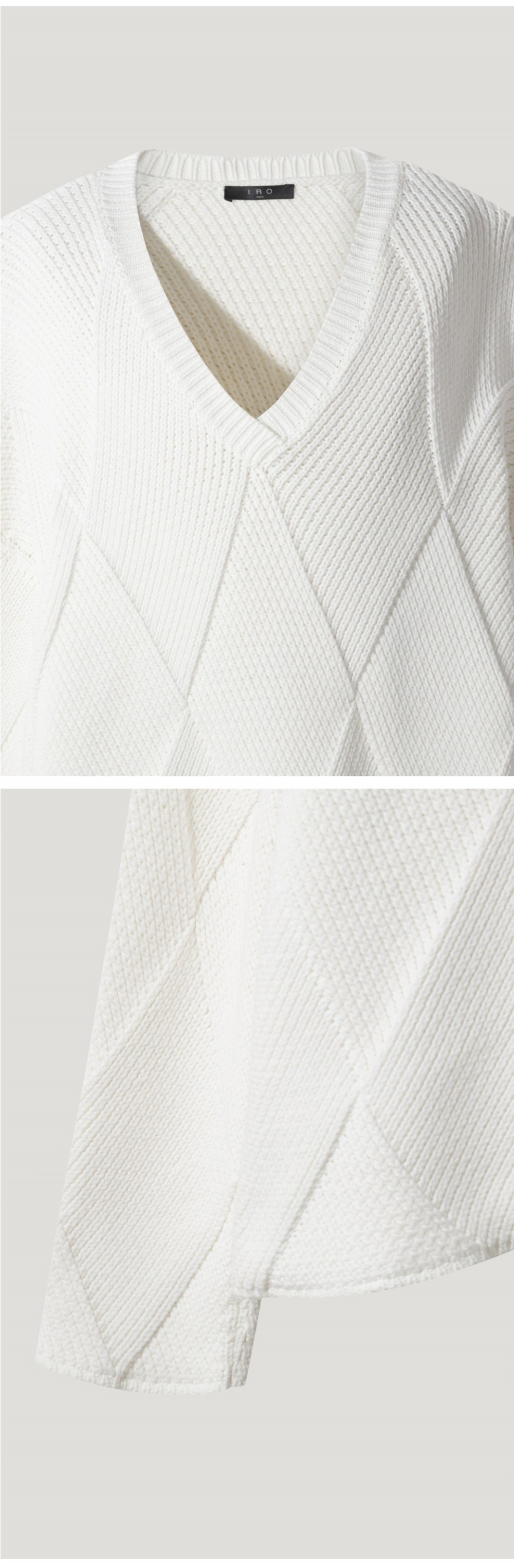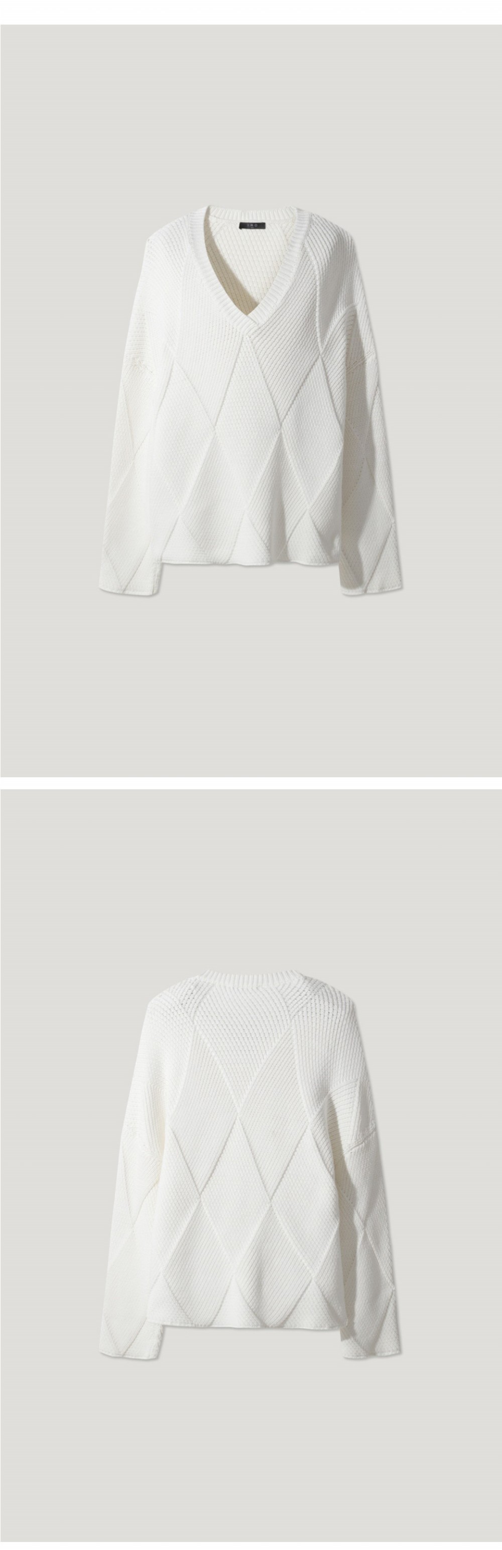 이로 오벨린스페 울 아가일 패턴 브이넥 니트 화이트