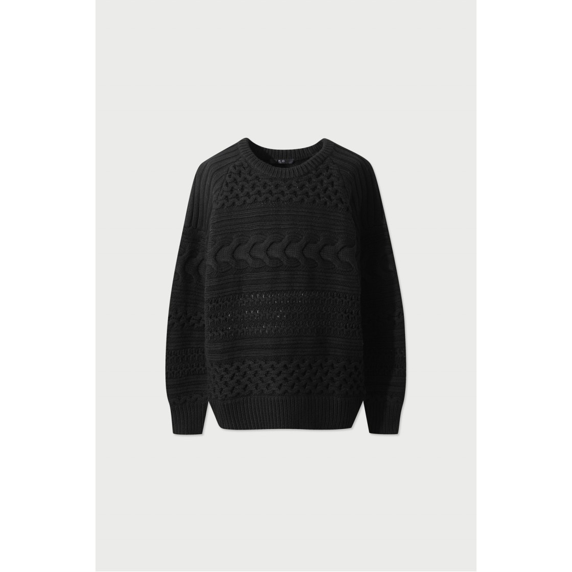 이로 라라스페 울 멀티 짜임 스웨터 블랙