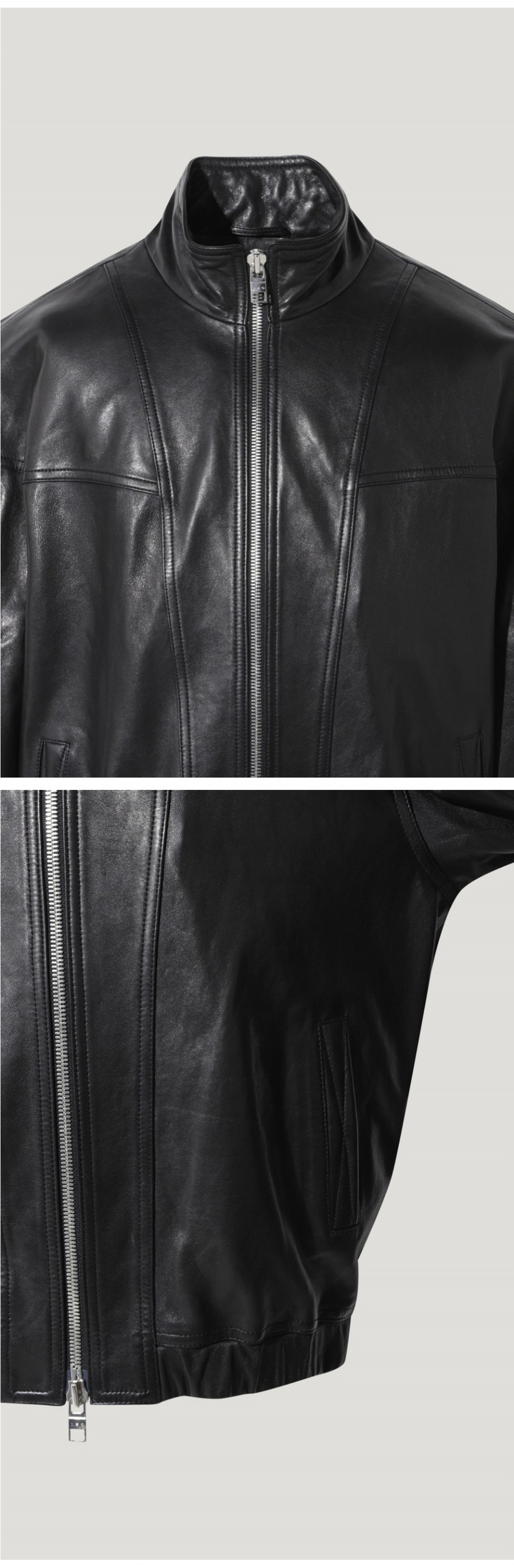 이로 오칸스페 램스킨 레더 숏 블루종 점퍼 블랙