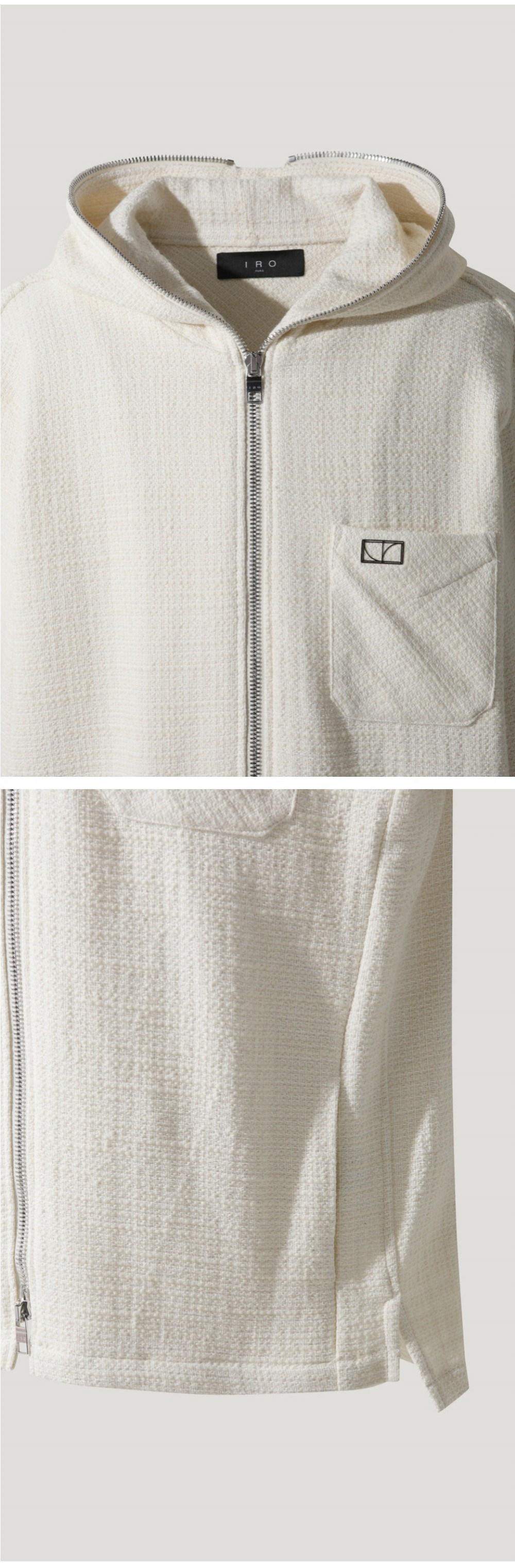 이로 아모리 볼드 트위드 울 집업 후디 점퍼 아이보리