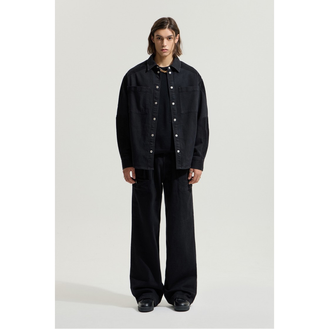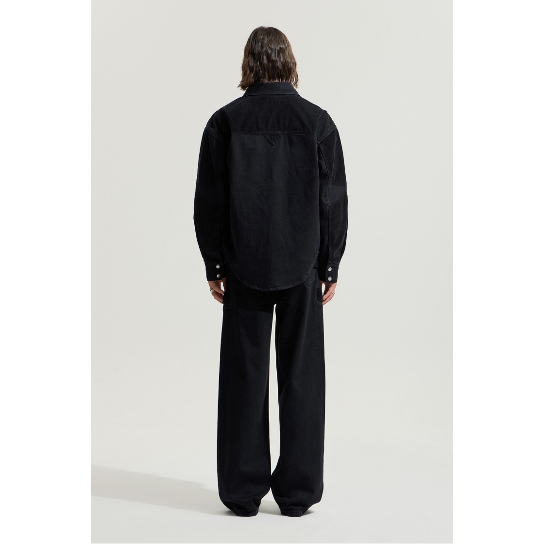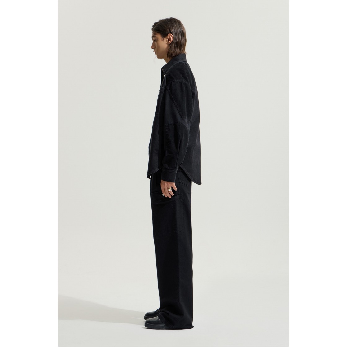 이로 레기네스페 코듀로이 배색 투 포켓 워크 셔켓 블랙
