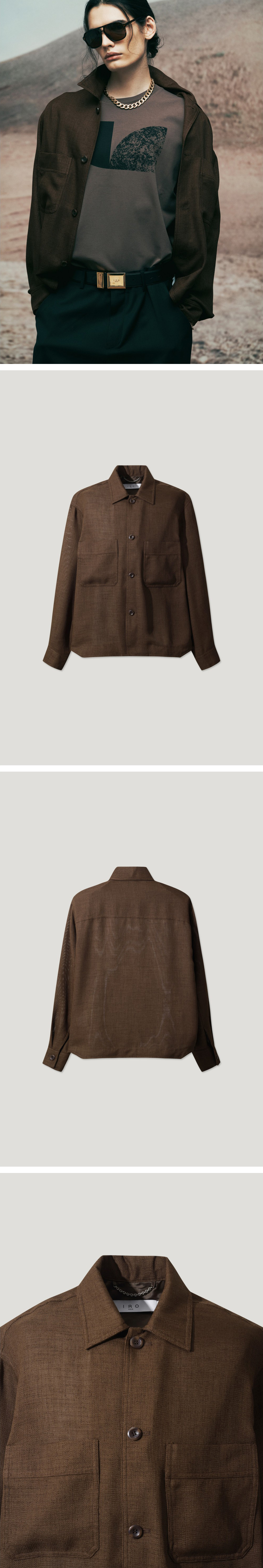 이로 린넨 라이크 솔리드 세미 오버 셔켓 브라운