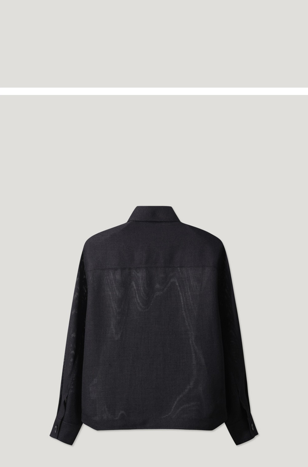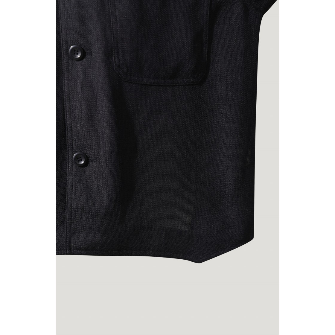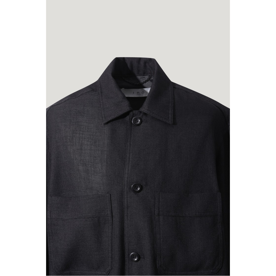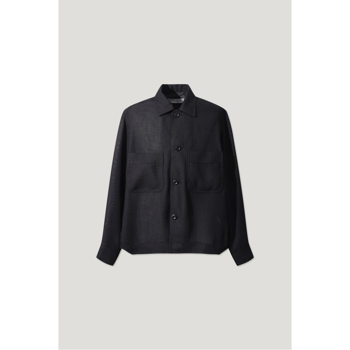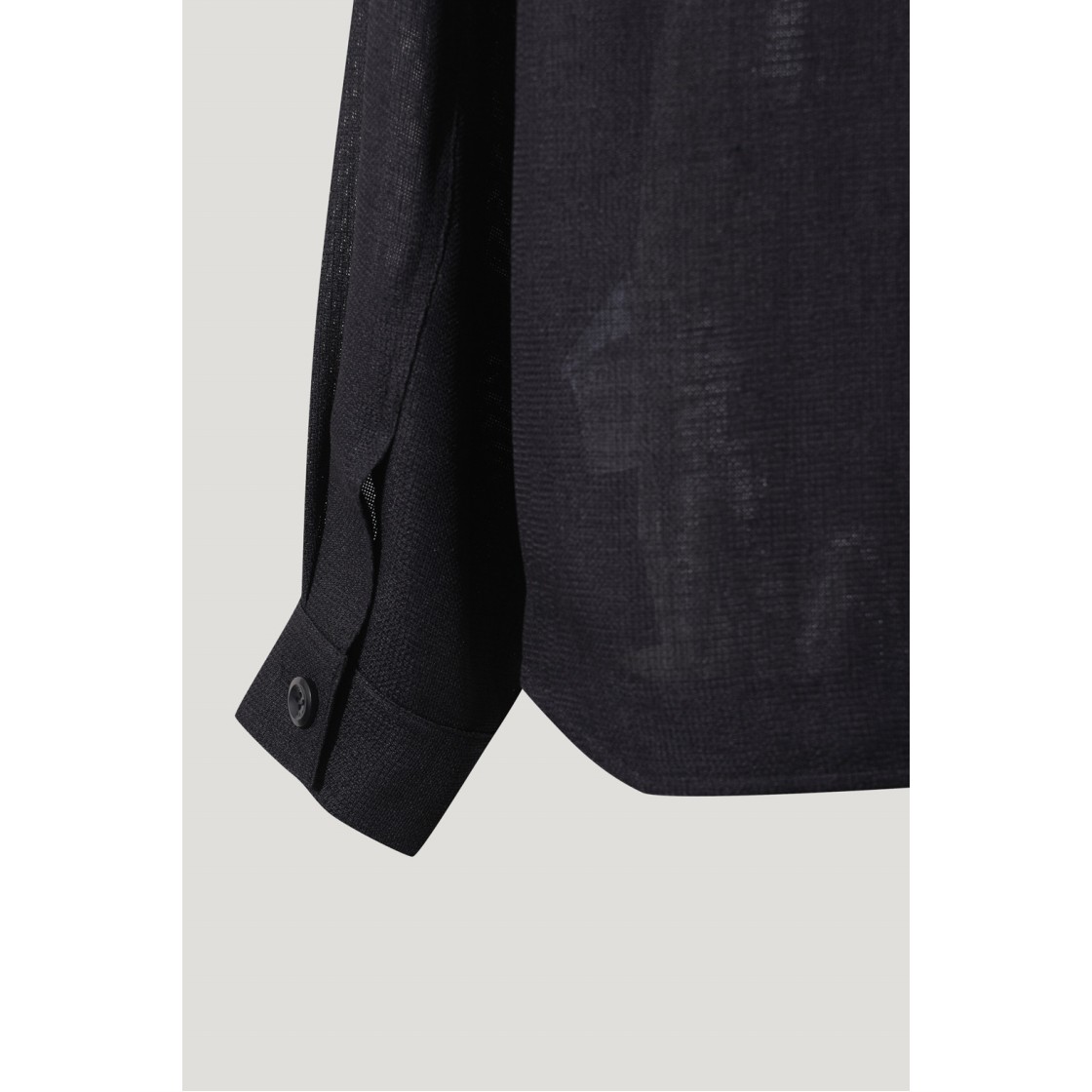 이로 린넨 라이크 솔리드 세미 오버 셔켓 블랙