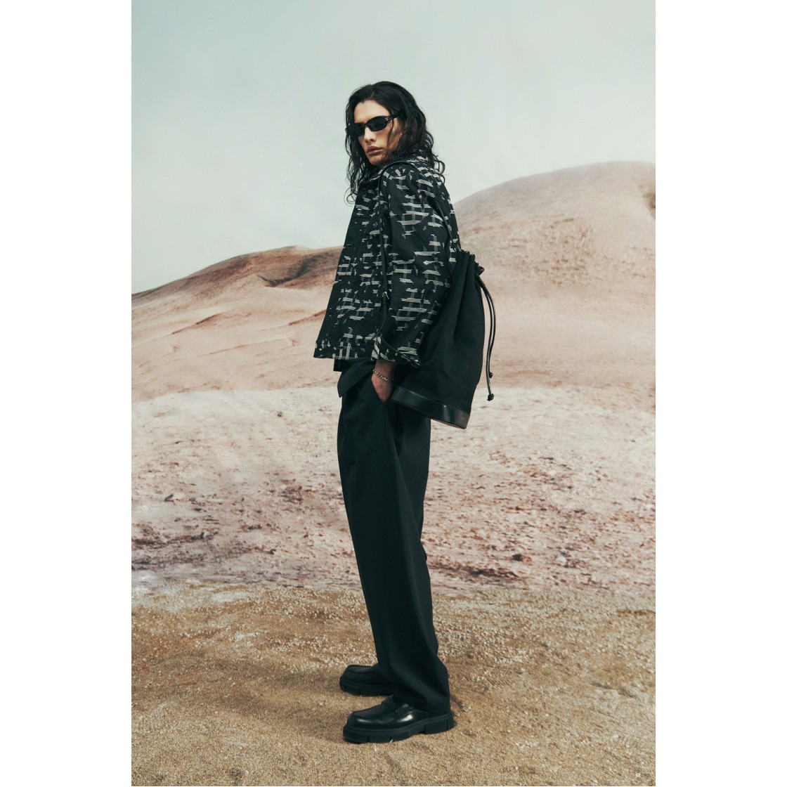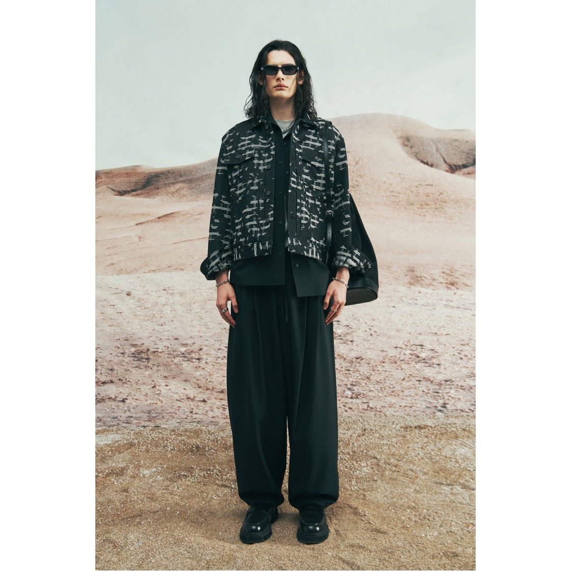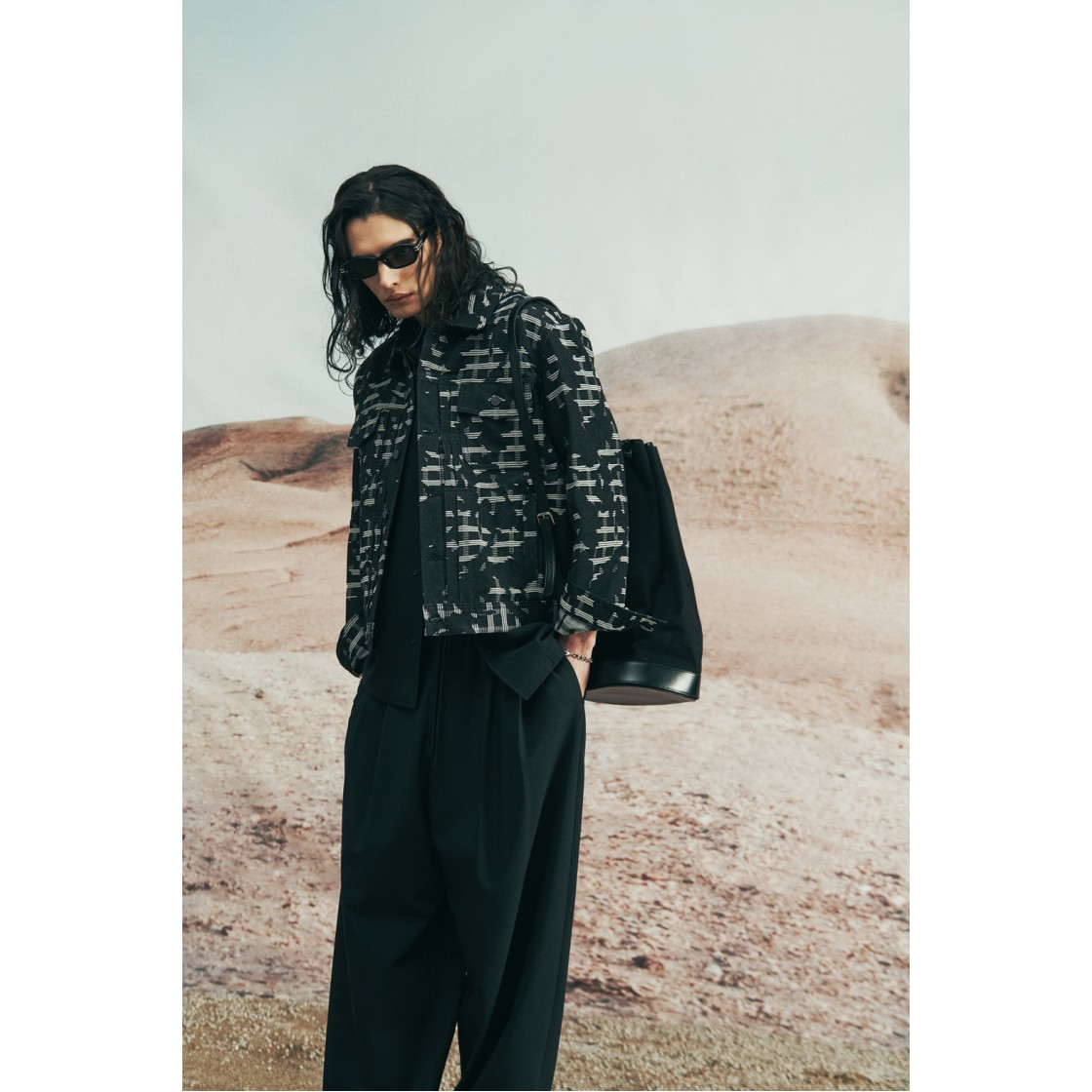 이로 야니스 코튼 패턴 재킷 블랙