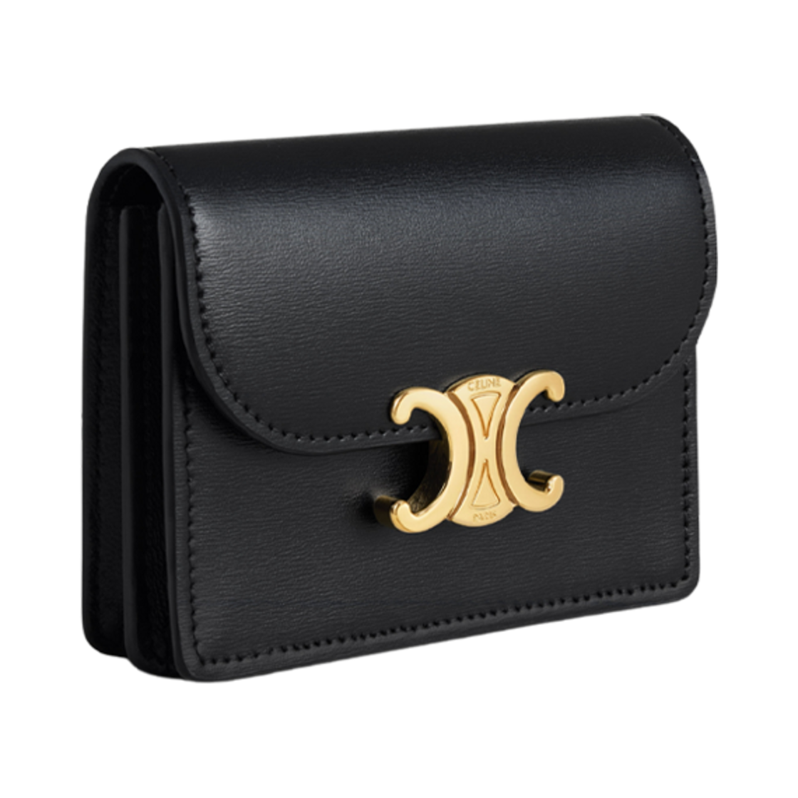 셀린느 비즈니스 카드 홀더 트리옹프 샤이니 카프스킨 블랙