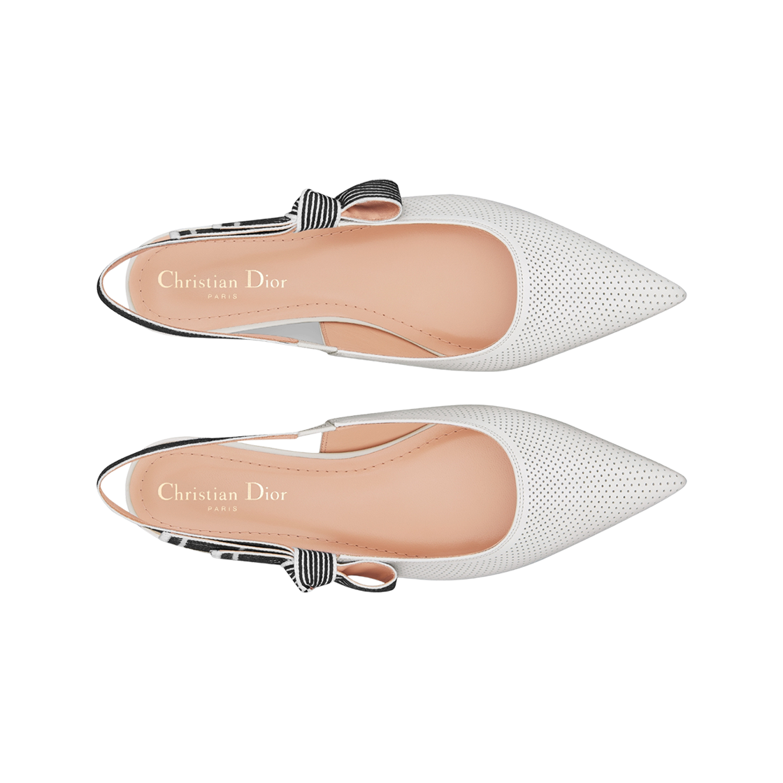 (W) Dior Toujours Slingback Flat Perforated Supple Lambskin White
