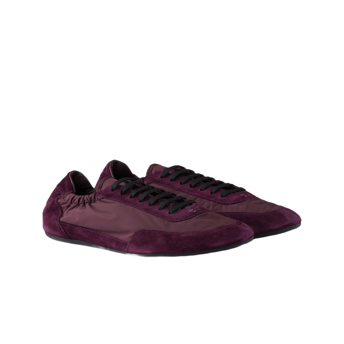 Prada Collapse Re-Nylon and Suede Sneakers Burgundy
