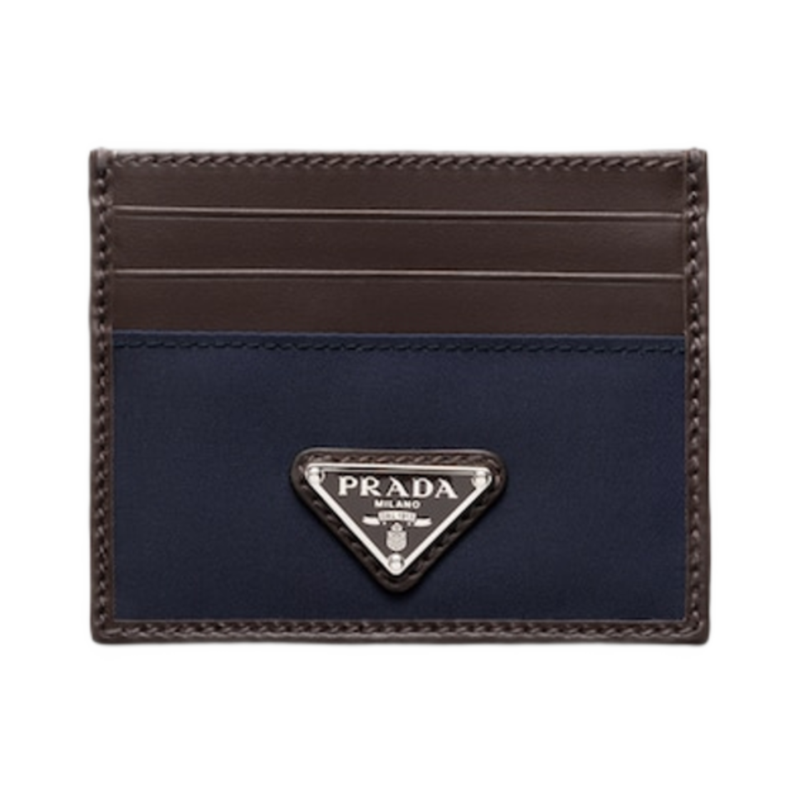 프라다 리나일론 앤 레더 카드 홀더 블루 커피