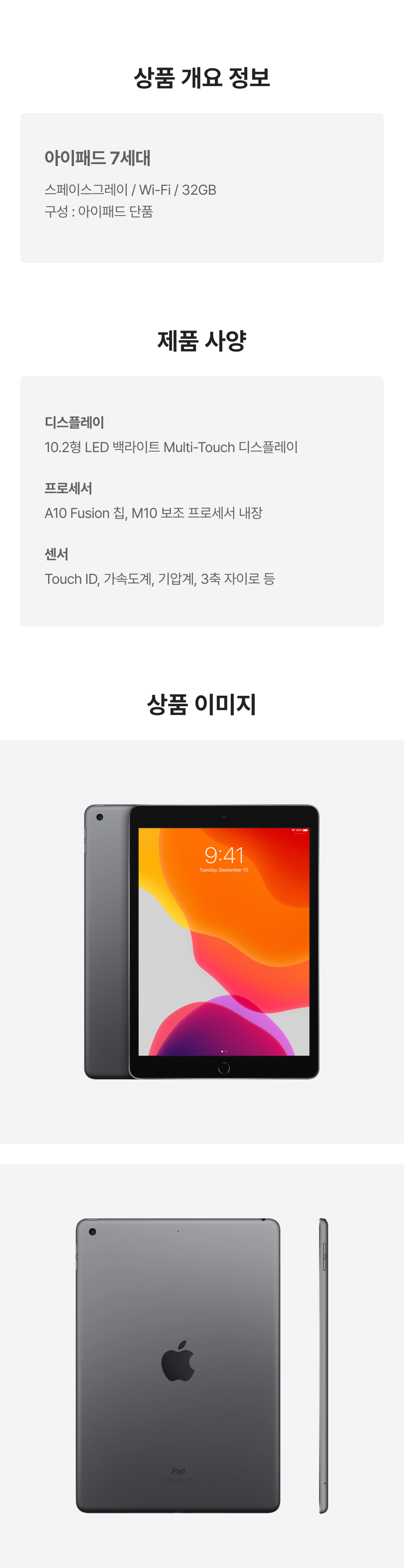 [B등급] 리퍼비시 아이패드 7세대 wifi A10 Fusion 32기가 스페이스그레이