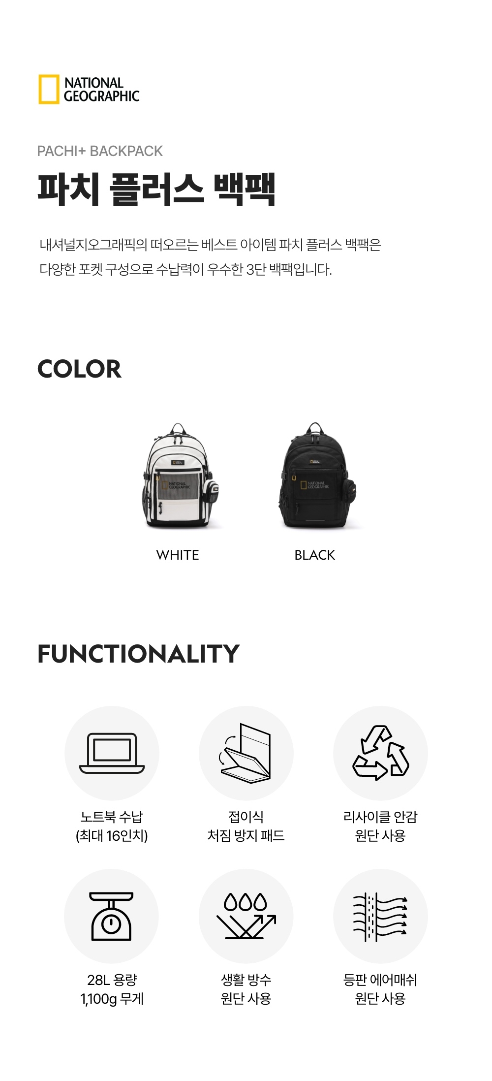 내셔널지오그래픽 파치 플러스 백팩 화이트