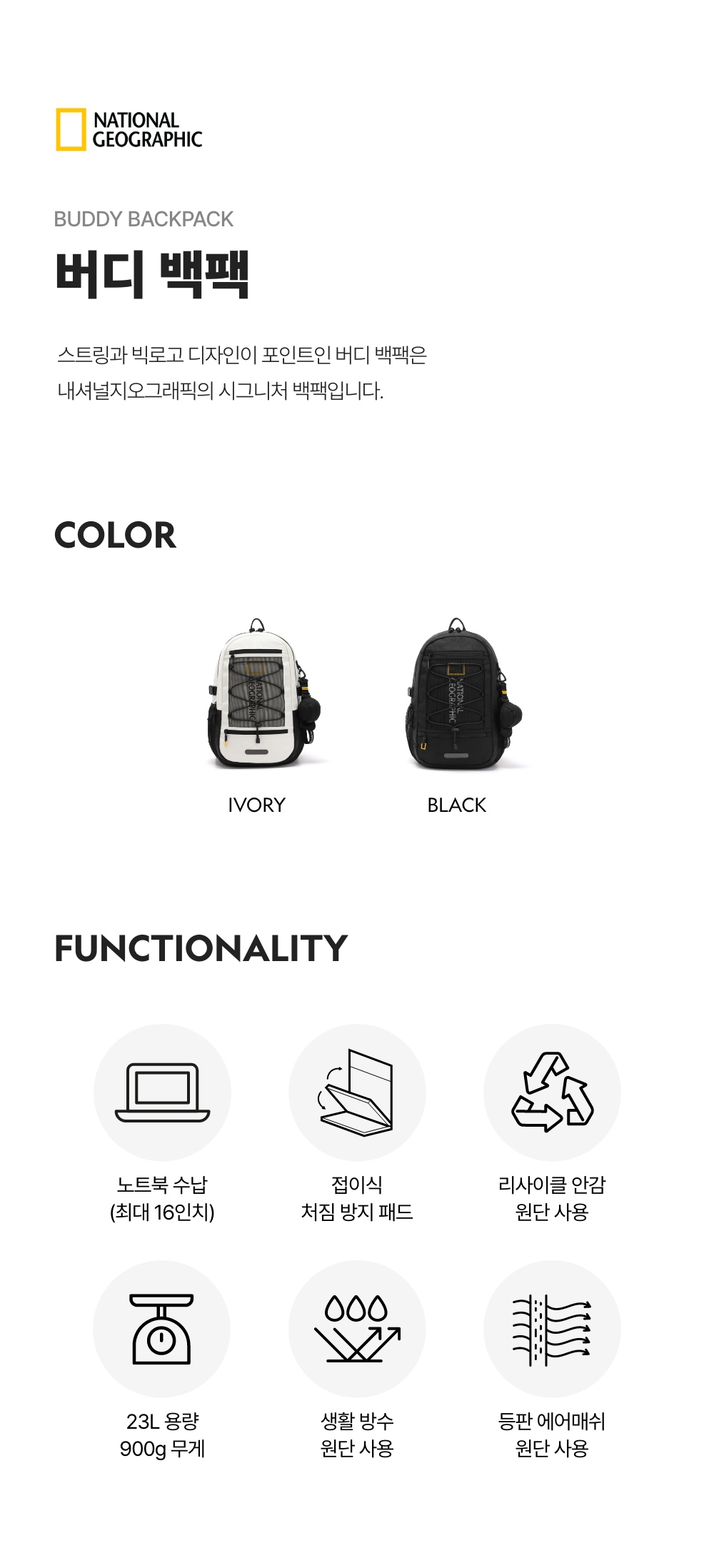 내셔널지오그래픽 버디 백팩 아이보리