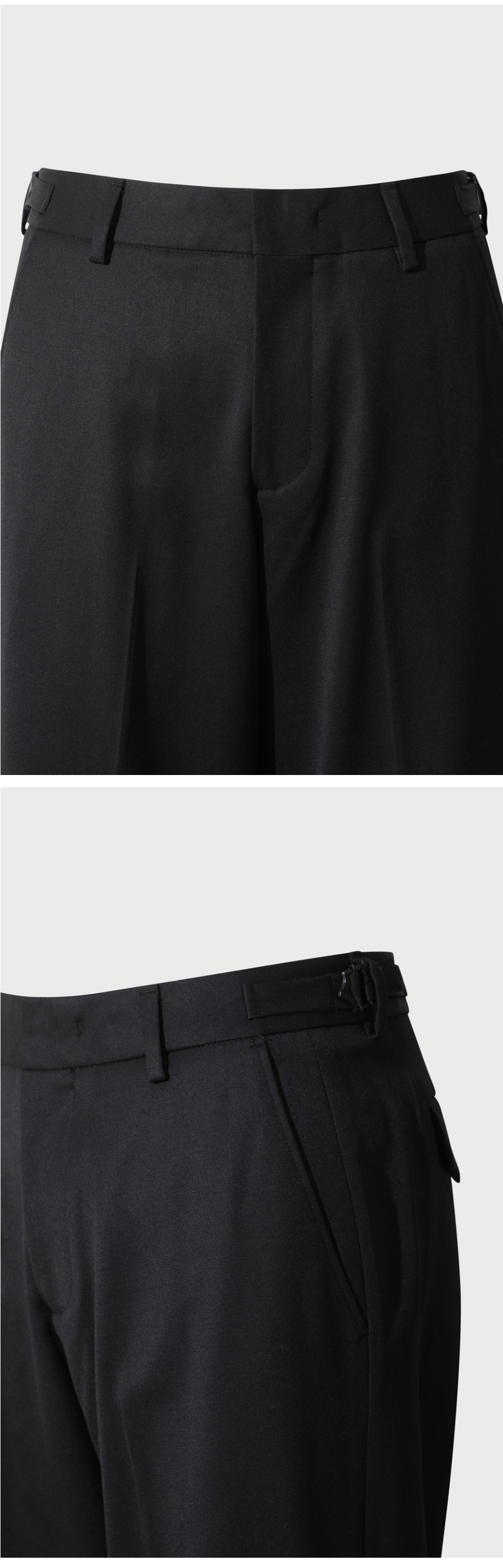이로 솔리드 와이드 버클 탭 팬츠 블랙