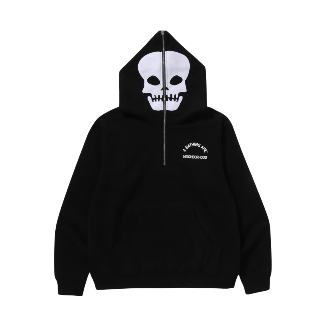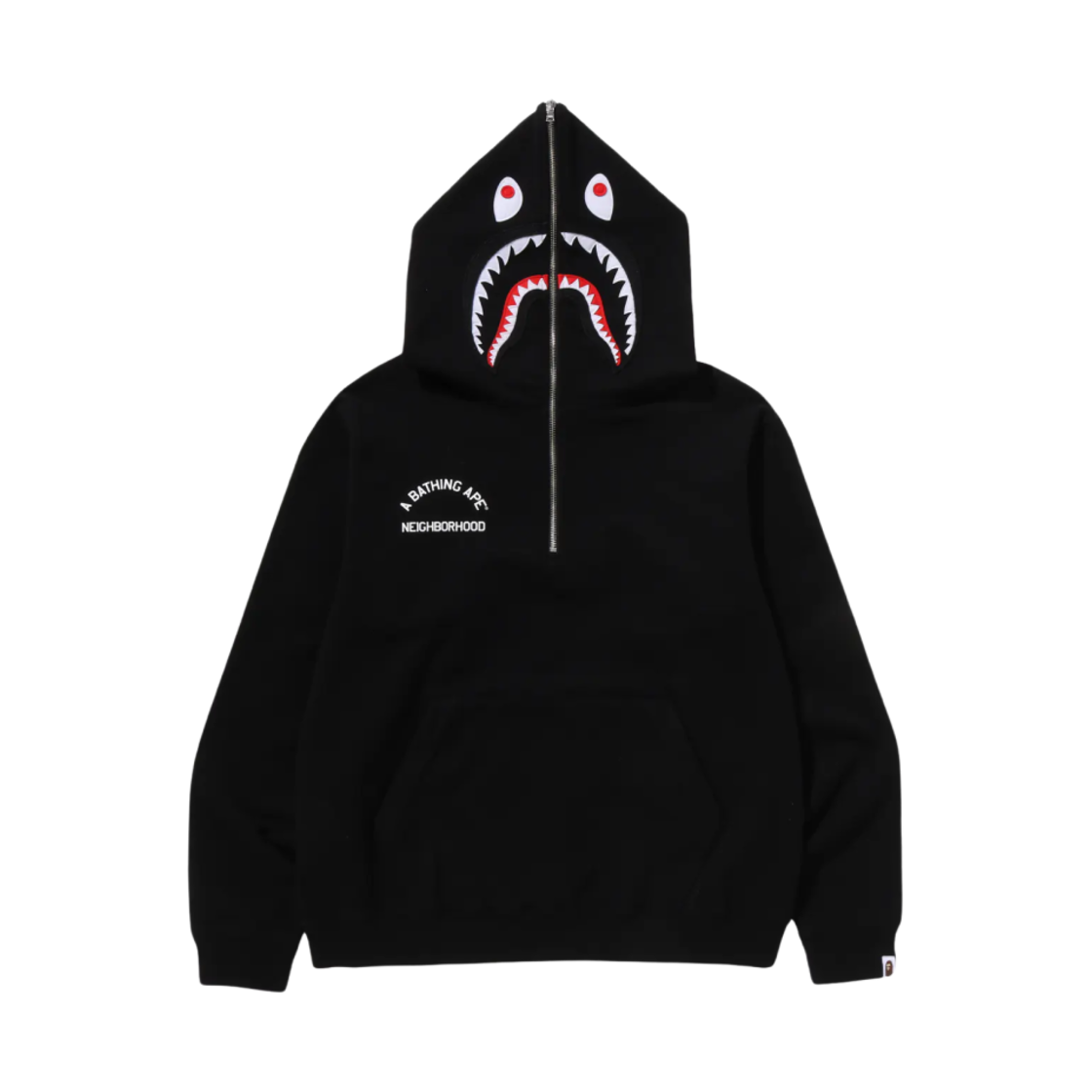 BAPE x Neighborhood Two Face Half Zip Pullover Hoodie Black