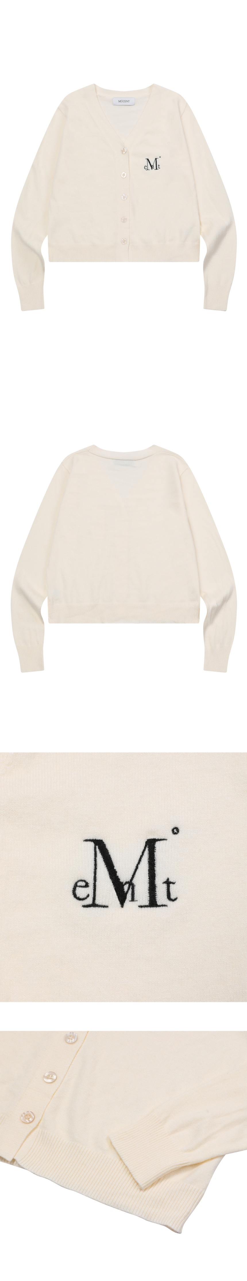 ┃Detail • 전면부 무센트 시그니처 로고 자수 • 간절기에 걸치기 적당한 두께감 • 착용 시 피부에 부드럽게 감기는 텍스쳐 • 세미 크롭 기장으로 하의에 관계 없이 착용 가능 • 페미닌한 무드의 브이넥 • 버튼 오픈 클로징으로 얇은 이너와 매치하기 용이 ┃Material : Polyester 100% ┃Care : Dry cleaning - 무센트는 말기의 행성인 이 지구에서 지속 가능한 옷들을 고민합니다. 우리는 신념을 소비하는 미닝아웃을 지지합니다.
