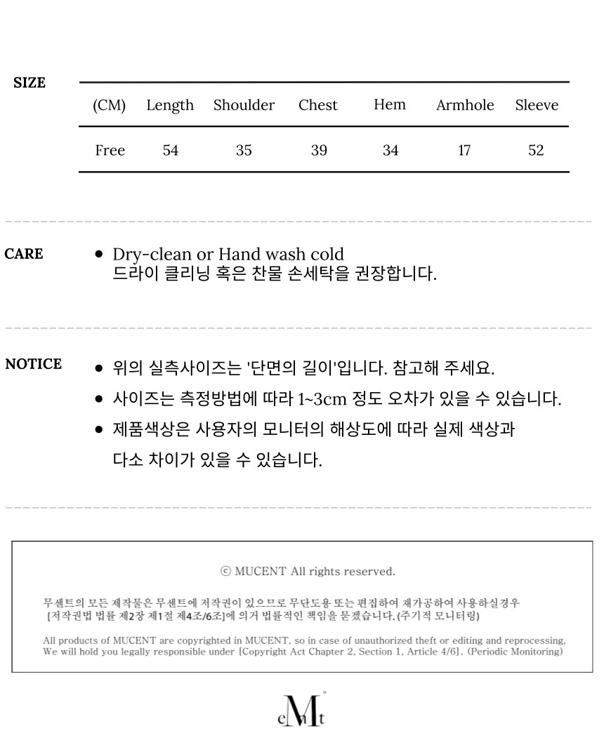 ┃Detail • 전면부 무센트 시그니처 로고 자수 • 자연스럽게 넥라인이 드러나는 디자인 • 버튼 오픈 클로징으로 다양한 이너와 레이어드 가능 • 골지 패턴으로 슬림한 실루엣 • 전면부 은은한 물결라인 포인트 • 소매와 밑단의 깔끔한 라인으로 미니멀한 무드 ┃Material : Polyester 100% ┃Care : Dry cleaning - 무센트는 말기의 행성인 이 지구에서 지속 가능한 옷들을 고민합니다. 우리는 신념을 소비하는 미닝아웃을 지지합니다.