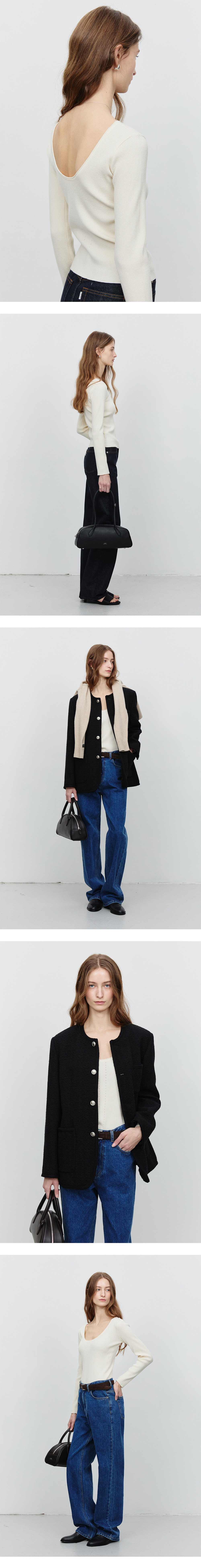 던스트 투웨이 스쿱 백 니트 탑 아이보리