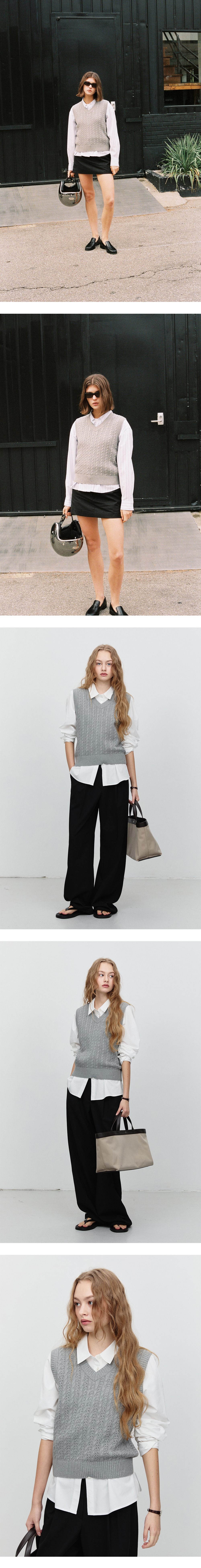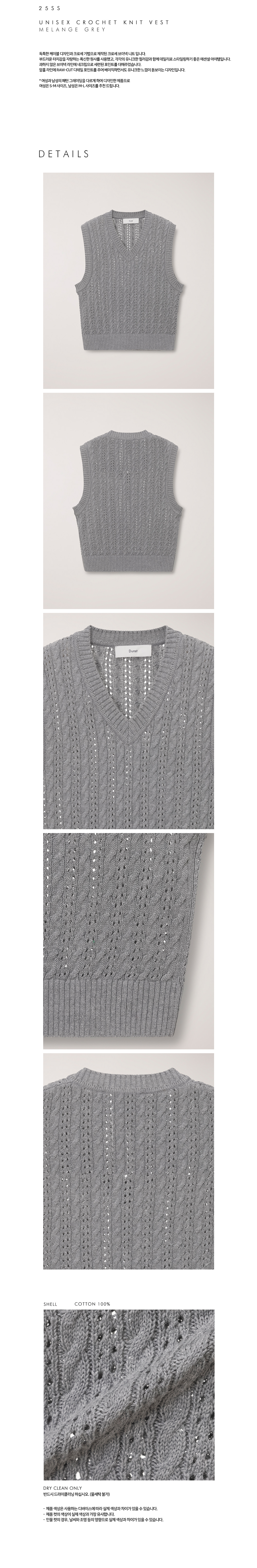 던스트 유니섹스 크로셰 니트 베스트 멜란지 그레이