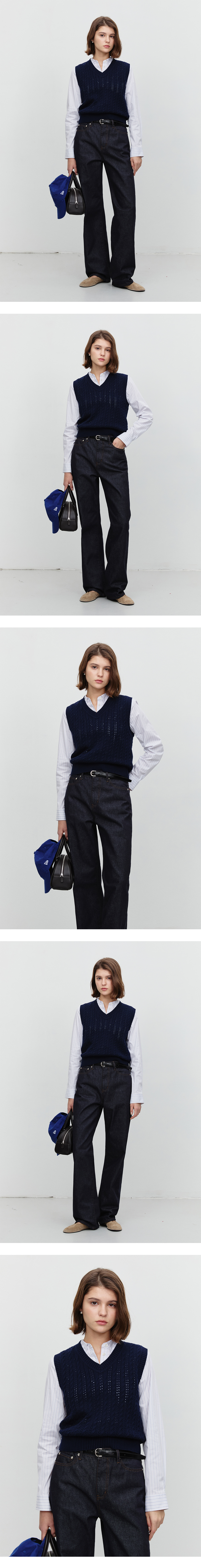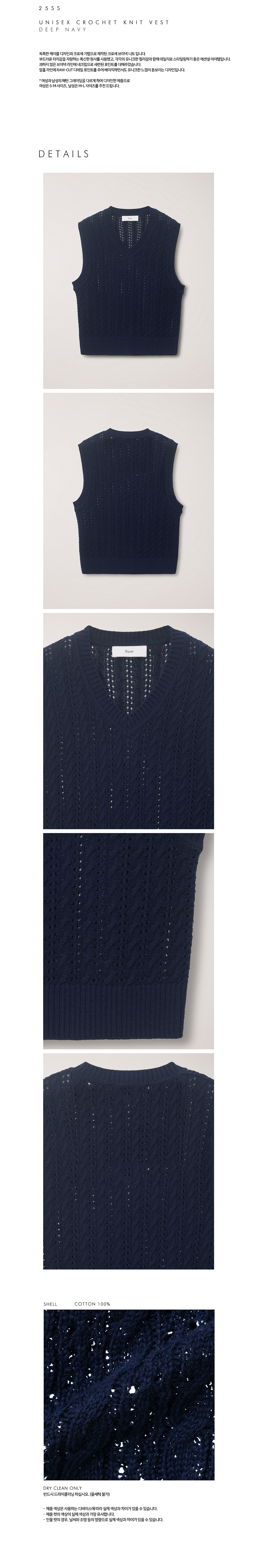 던스트 유니섹스 크로셰 니트 베스트 딥 네이비