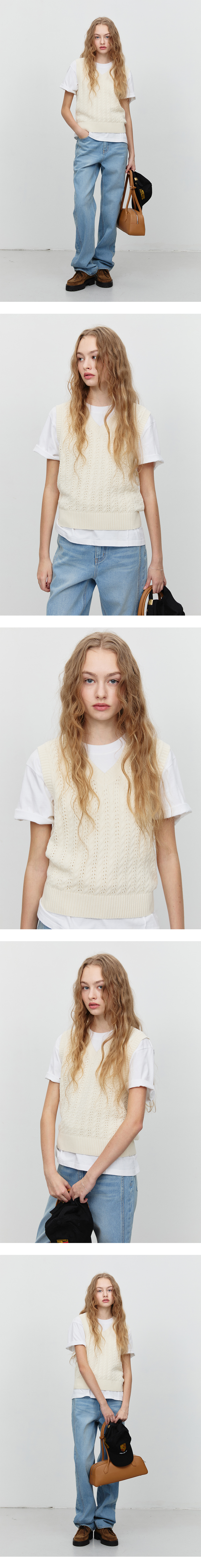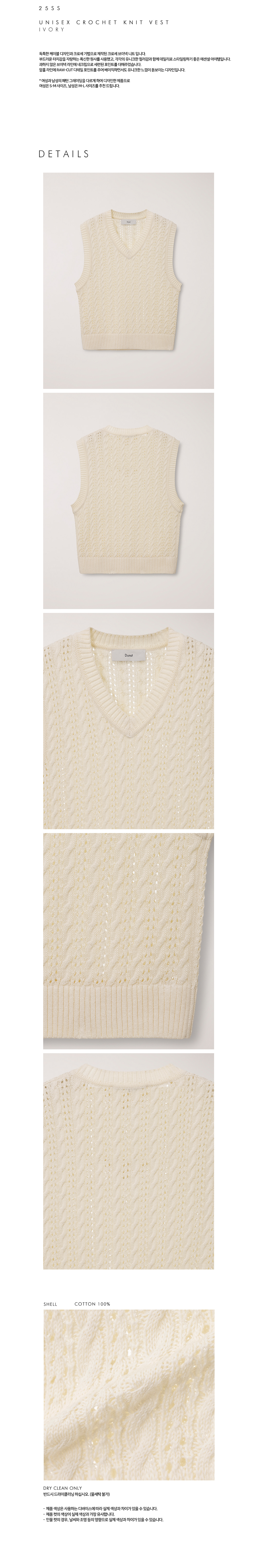 던스트 유니섹스 크로셰 니트 베스트 아이보리