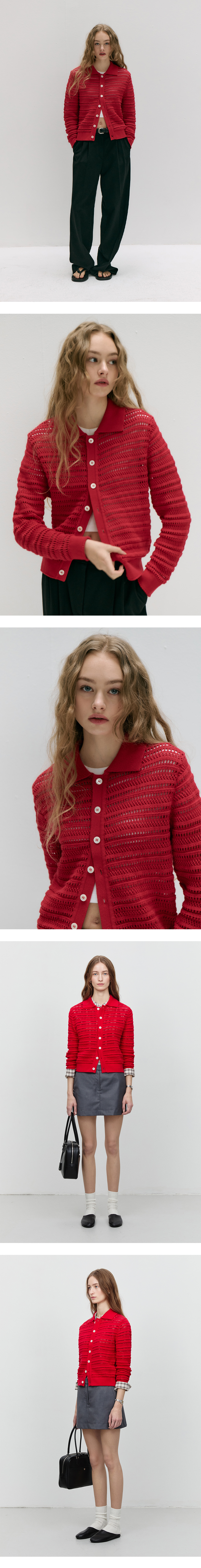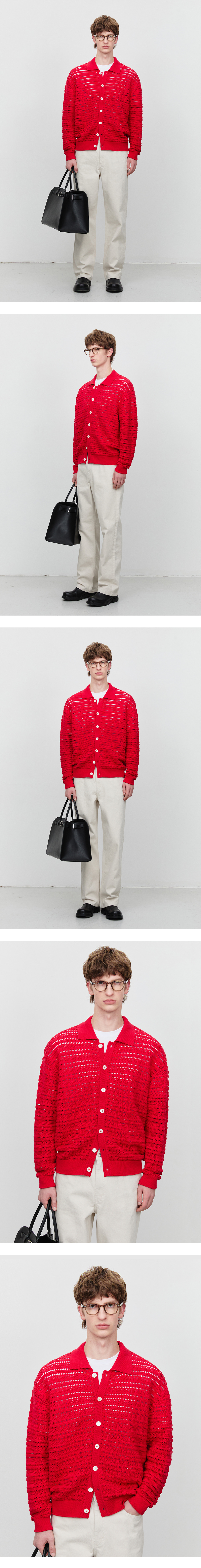 던스트 유니섹스 오픈 칼라 가디건 레드