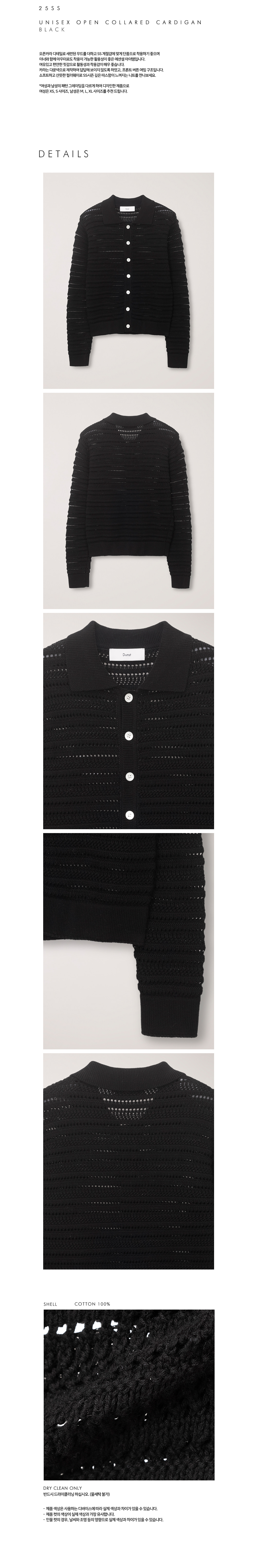 던스트 유니섹스 오픈 칼라 가디건 블랙