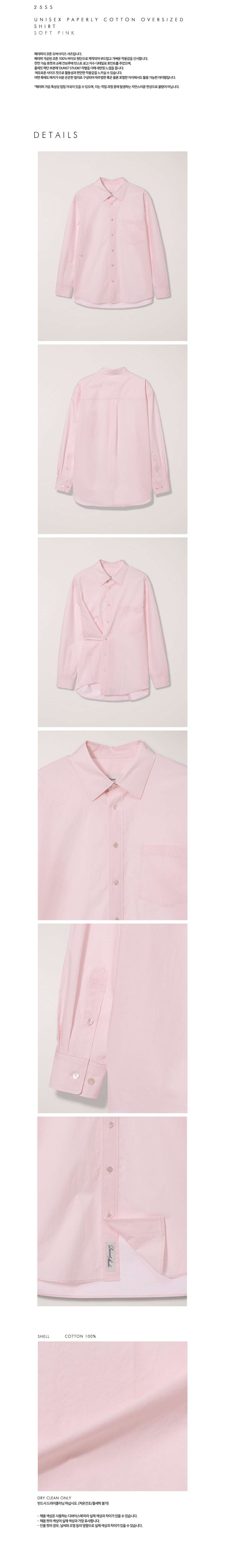 던스트 유니섹스 페이퍼리 코튼 오버사이즈 셔츠 소프트 핑크