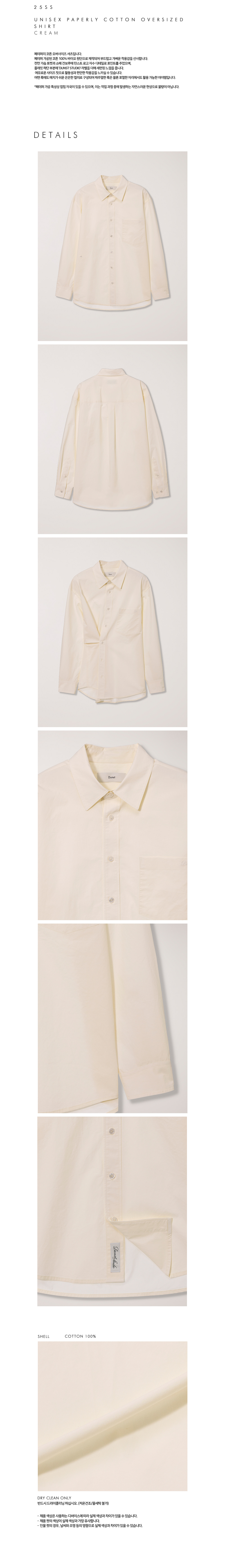 던스트 유니섹스 페이퍼리 코튼 오버사이즈 셔츠 크림
