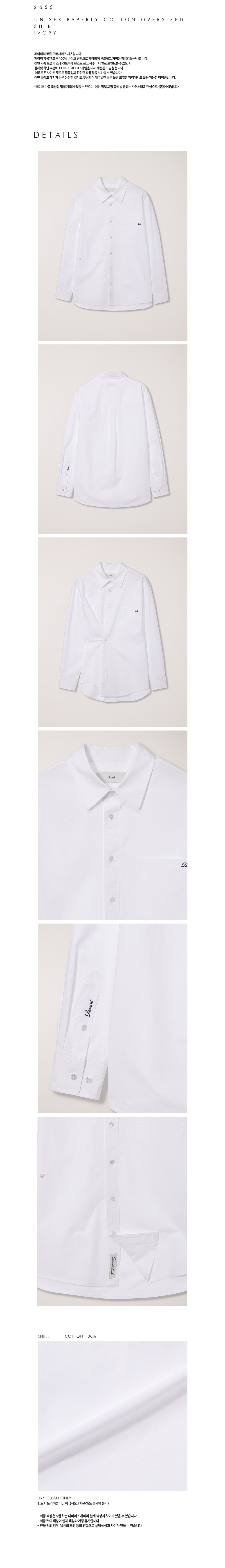 던스트 유니섹스 페이퍼리 코튼 오버사이즈 셔츠 아이보리
