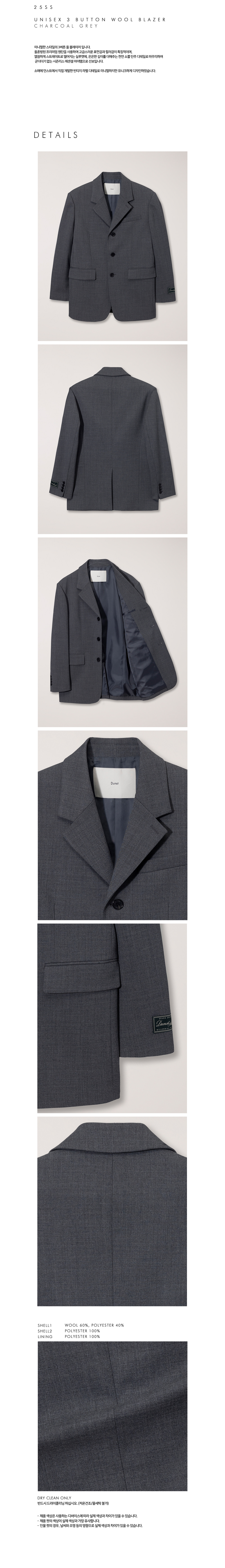 던스트 유니섹스 3버튼 울 블레이져 차콜 그레이