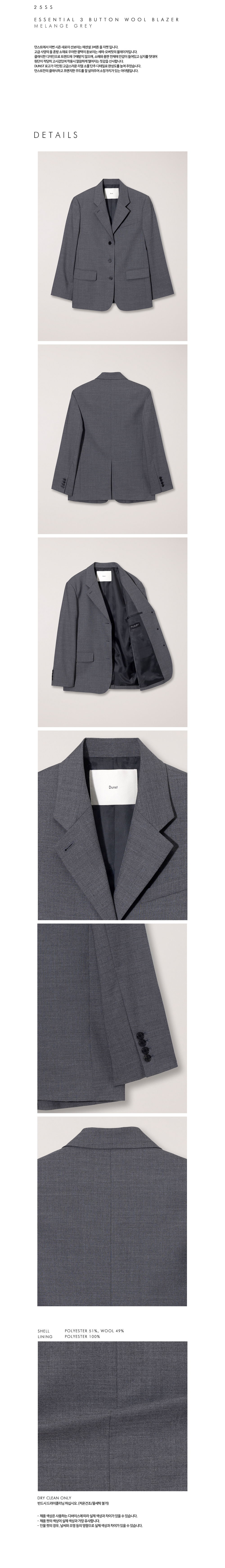던스트 에센셜 3버튼 울 블레이져 멜란지 그레이
