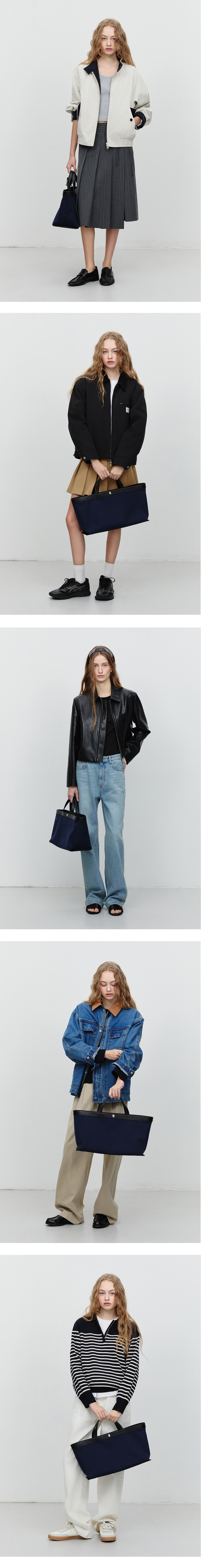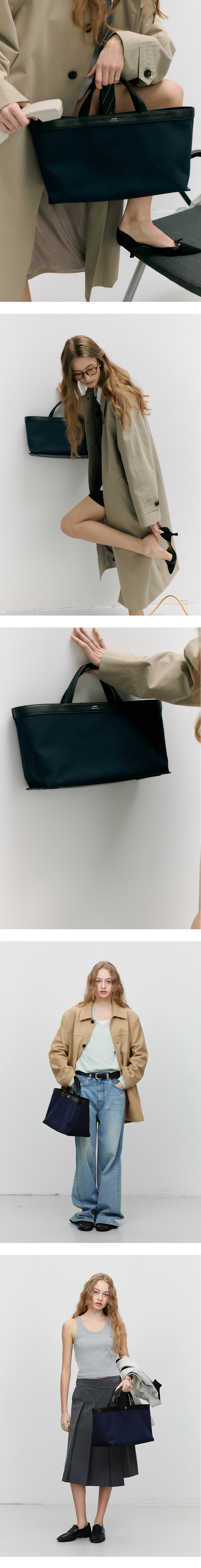 던스트 캔버스 레더 토트 백 네이비 / 블랙