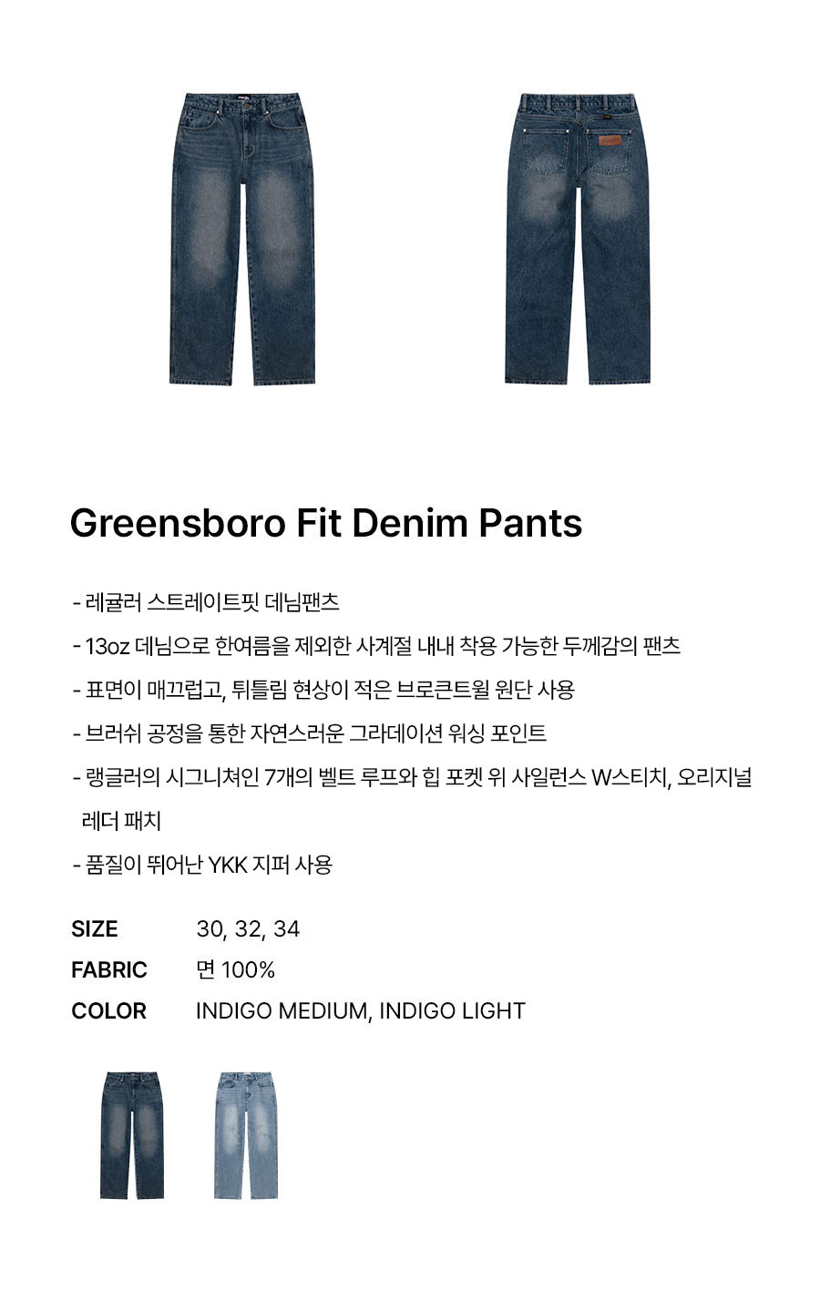 랭글러 그린스보로 데님 팬츠 인디고 미디움