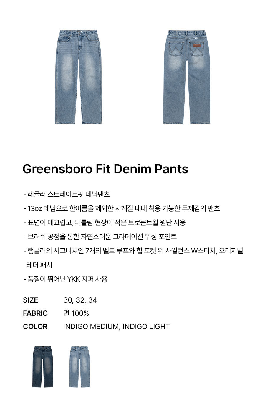 랭글러 그린스보로 데님 팬츠 인디고 라이트