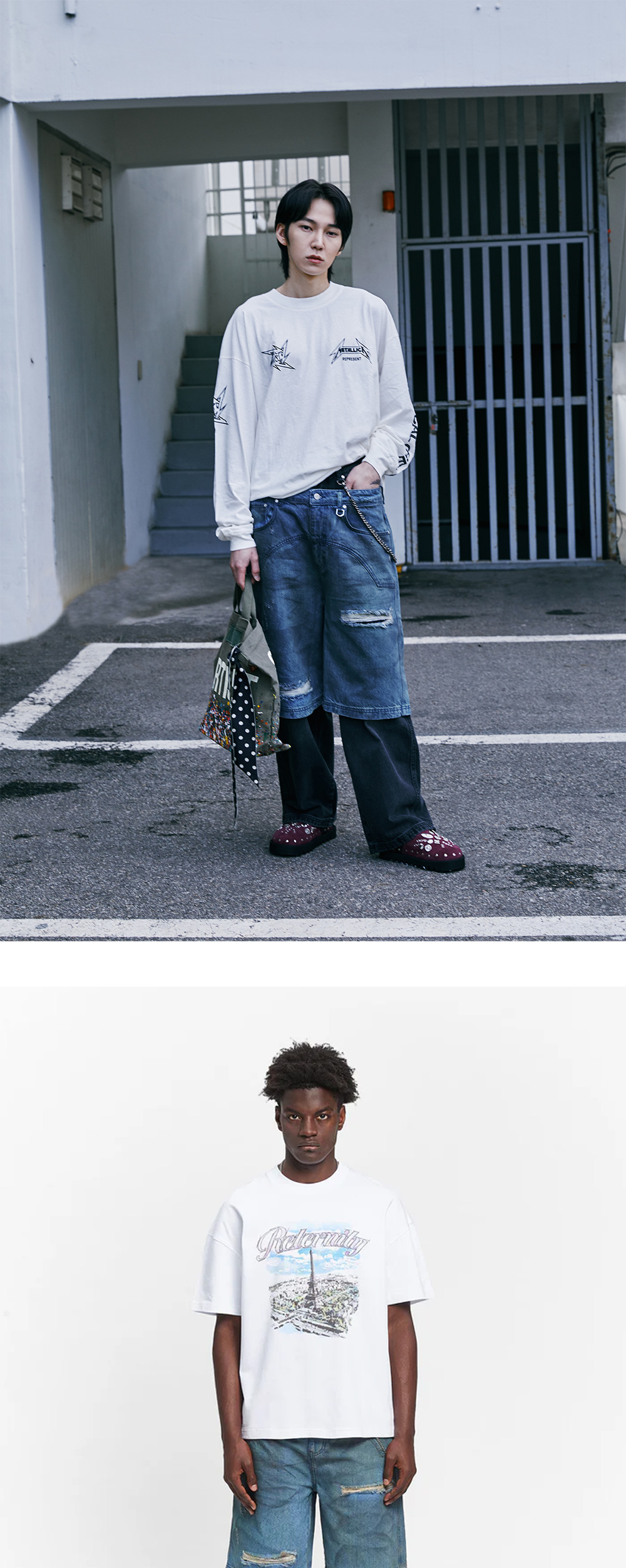 편안하고 현대적인 실루엣을 제공하는 리터니티의 페인티드 아티잔 조츠입니다. - 독특한 장인 워싱 - 메탈 SIGNE 행거 - 장식 스티칭 - YKK 지퍼 - 헐렁한 핏 - 유럽에서 수작업으로 제작 * 모델 스펙: 185cm, 33 사이즈 착용