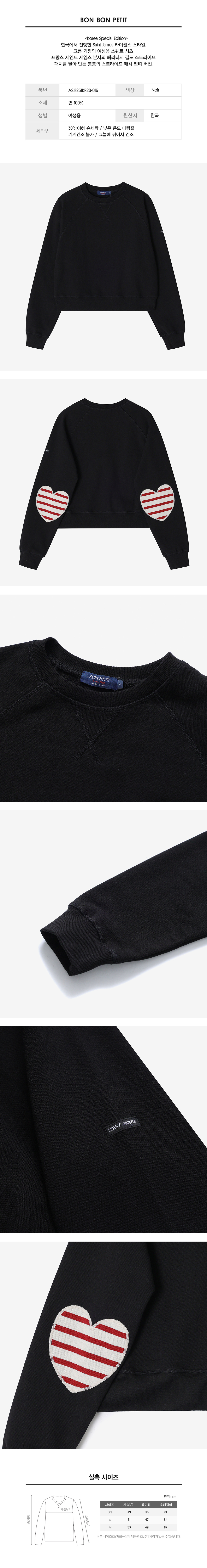 한국에서 진행한 Saint James 라이센스 스타일. 크롭 기장의 여성용 스웻셔츠 프랑스 세인트 제임스 본사의 헤리티지 길도 스트라이프 패치를 달아 만든 봉봉의 스트라이프 패치 쁘띠 버전.