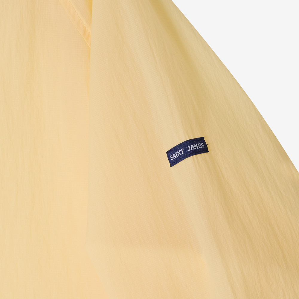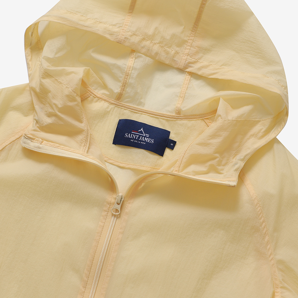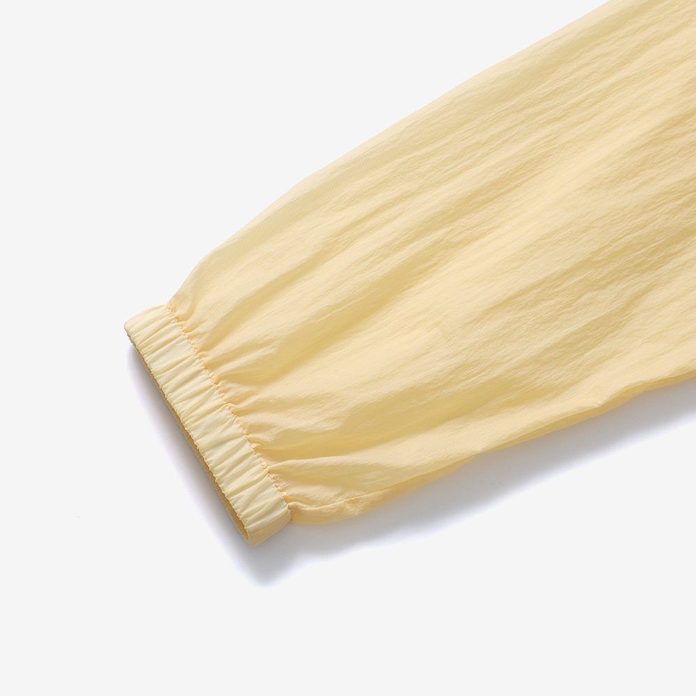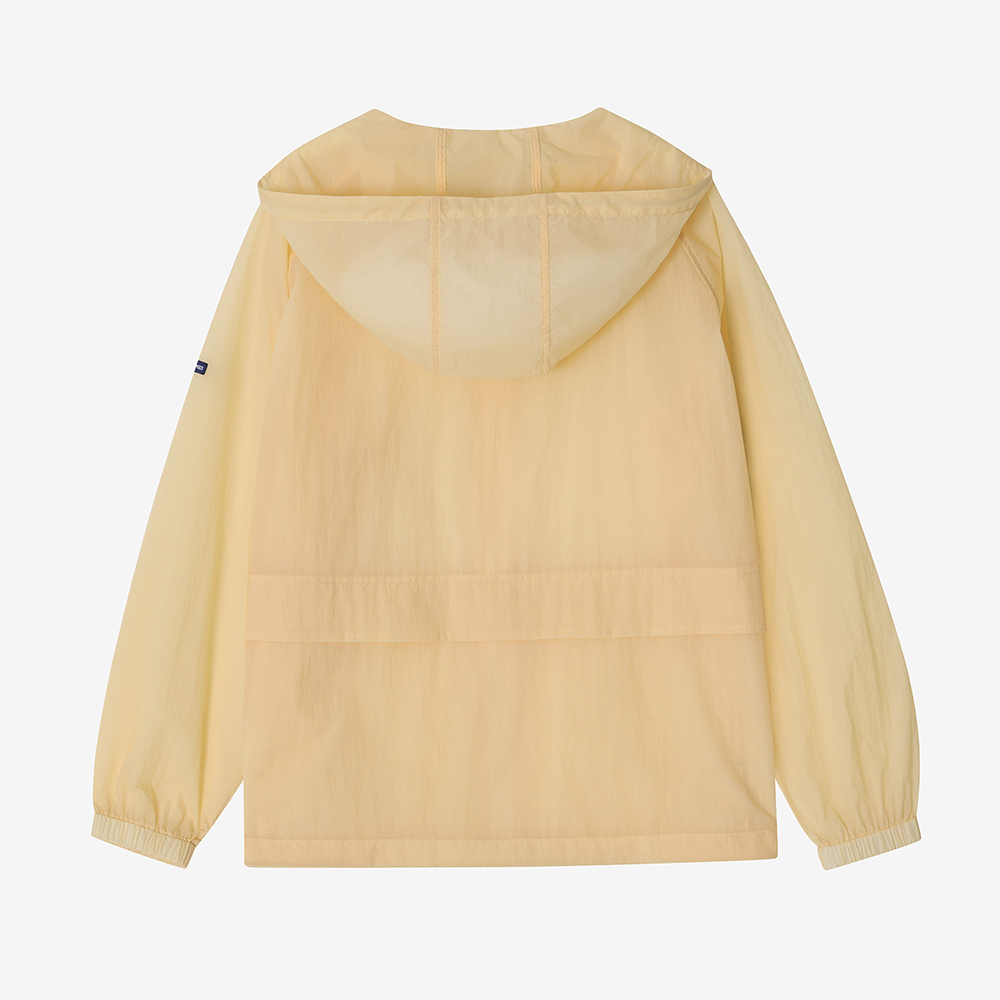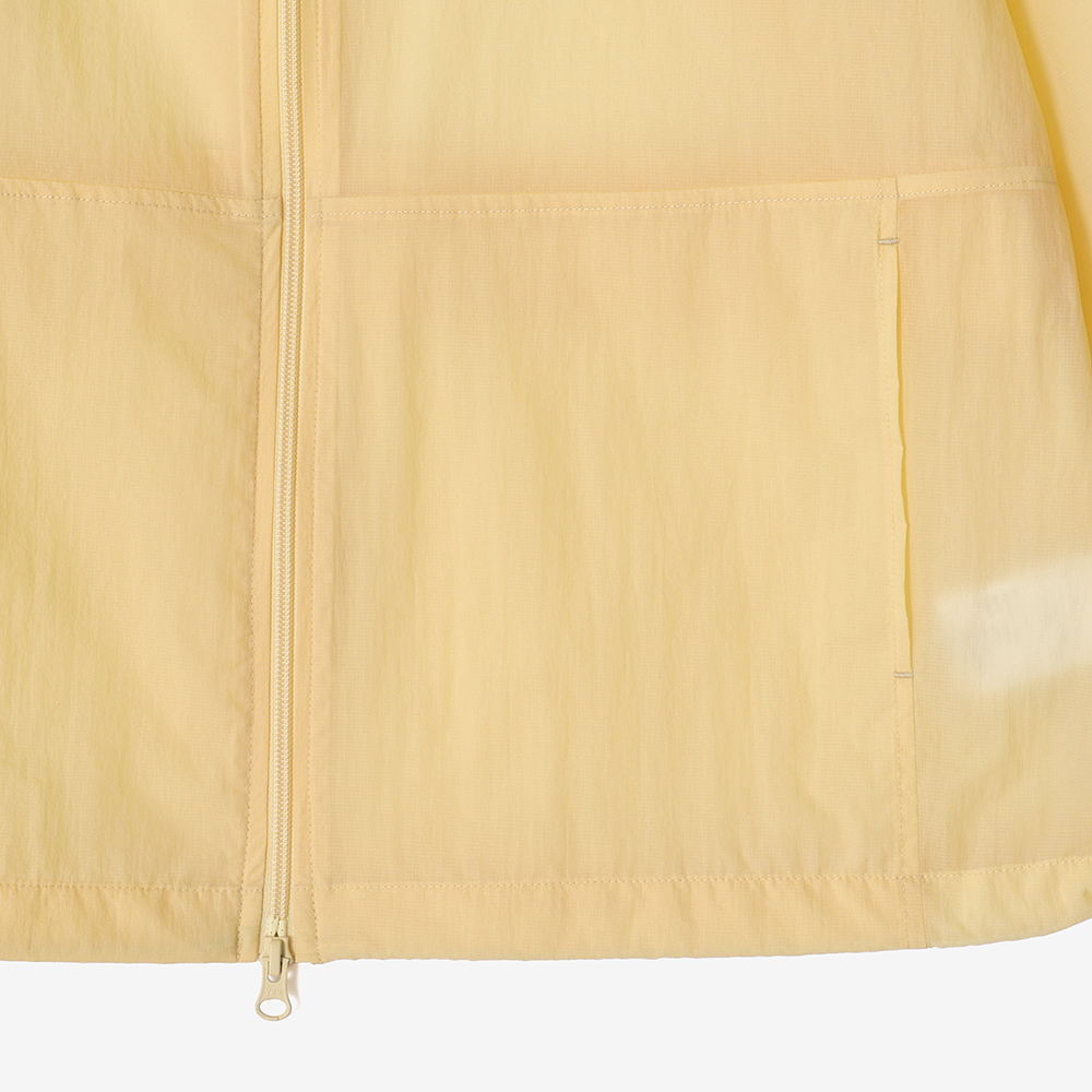 고밀도 나일론 립스탑 원단을 사용한 윈드 브레이커. 레글런 슬리브로 부드러운 실루엣을 연출하였고, 별도의 라이닝이 없는 간절기용 아우터이다. 소매 밑단이 밴드로 마감되어 바람이 드는 것을 방지하였고, 뒷판에 플랩 디테일로 귀여운 무드를 더해준다.