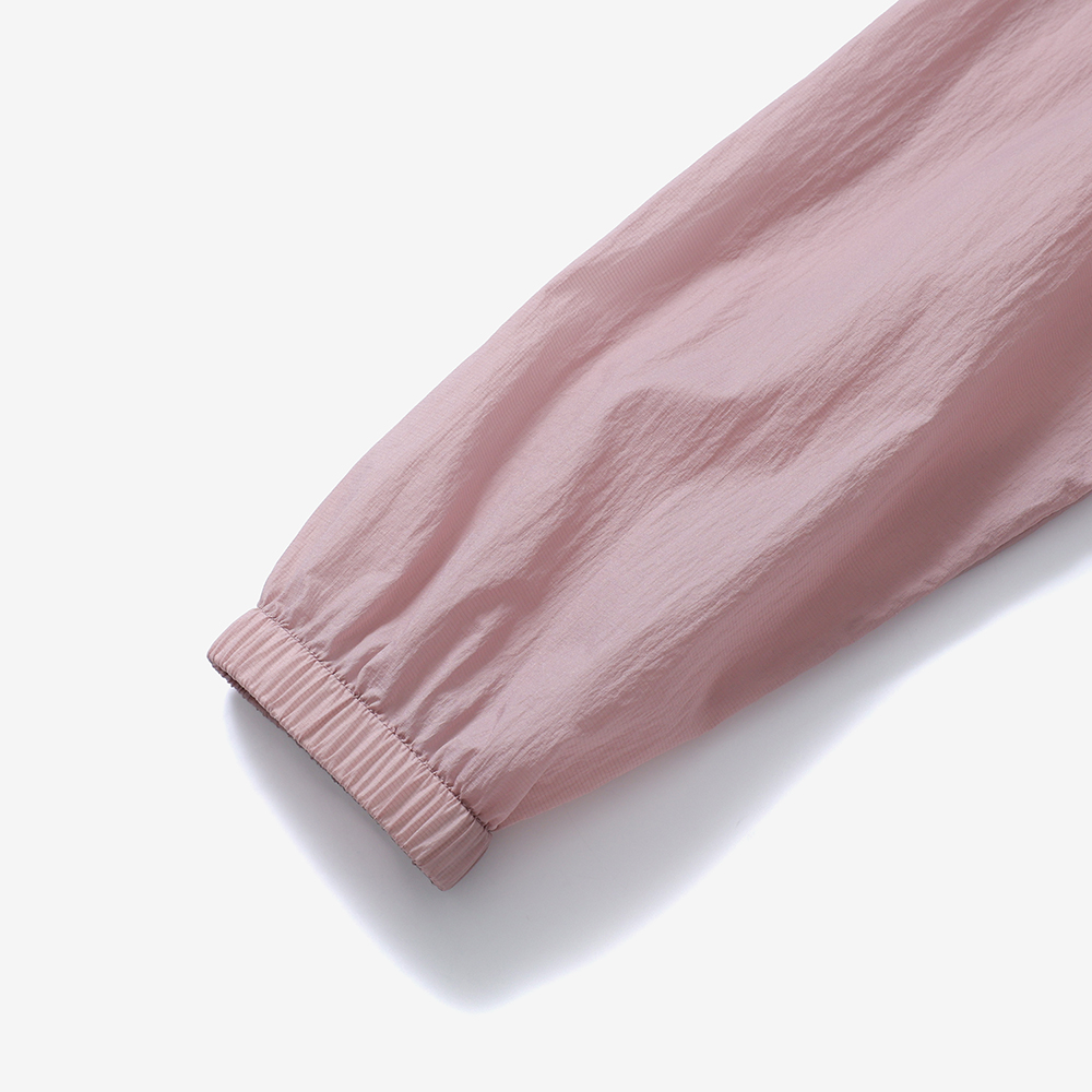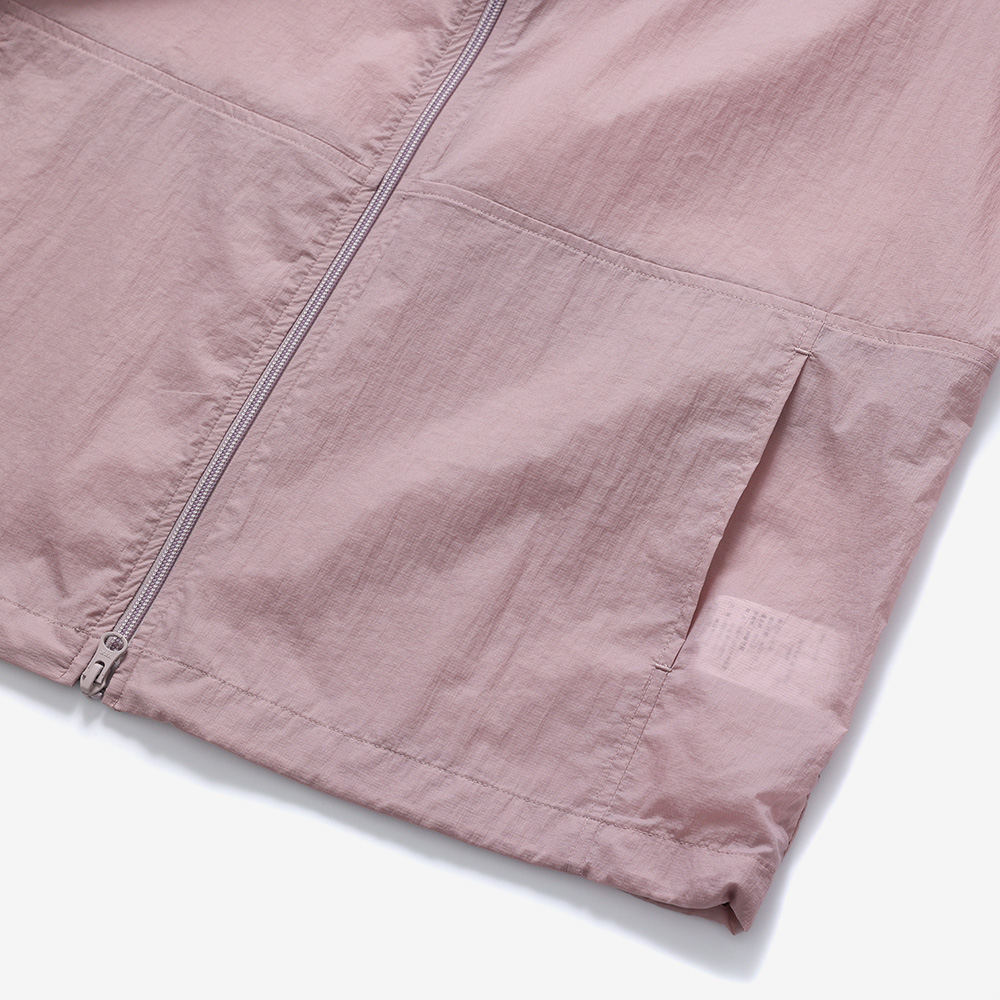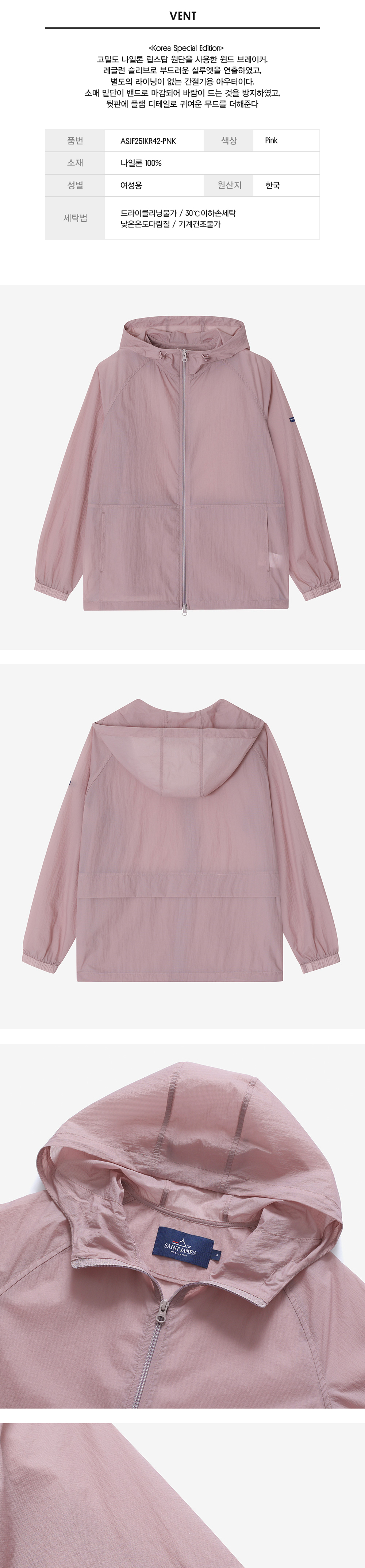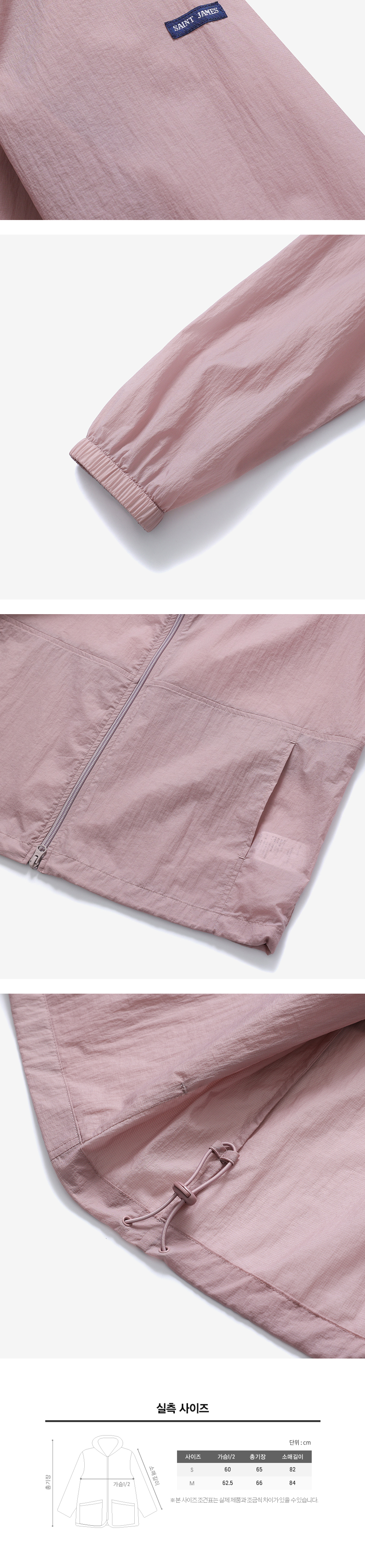 고밀도 나일론 립스탑 원단을 사용한 윈드 브레이커. 레글런 슬리브로 부드러운 실루엣을 연출하였고, 별도의 라이닝이 없는 간절기용 아우터이다. 소매 밑단이 밴드로 마감되어 바람이 드는 것을 방지하였고, 뒷판에 플랩 디테일로 귀여운 무드를 더해준다.