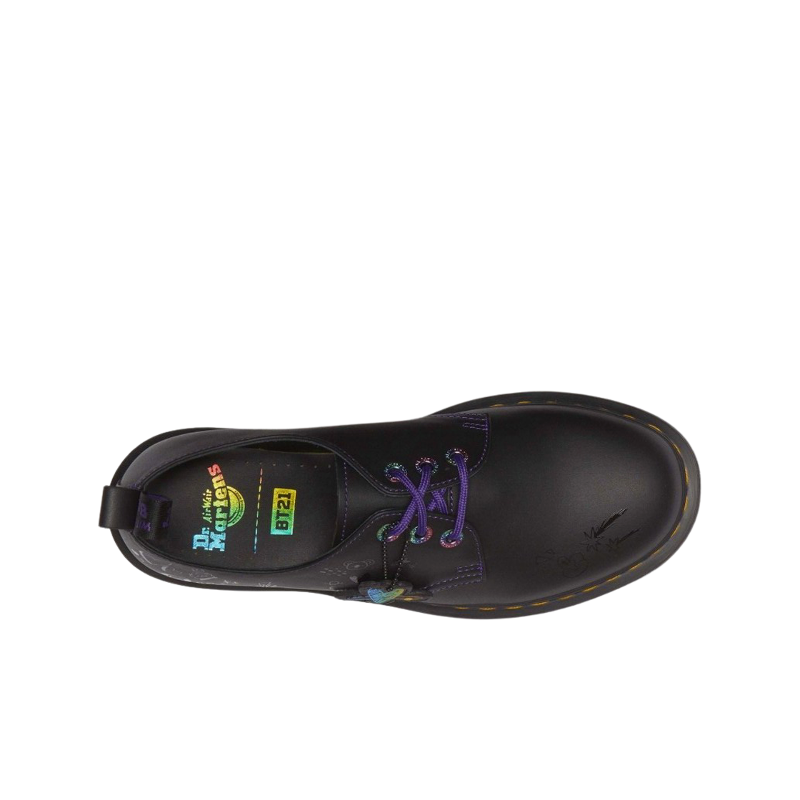 닥터마틴 x BT21 1461 글로스 프린트 이리디센트 포일 엠보스 나파 블랙