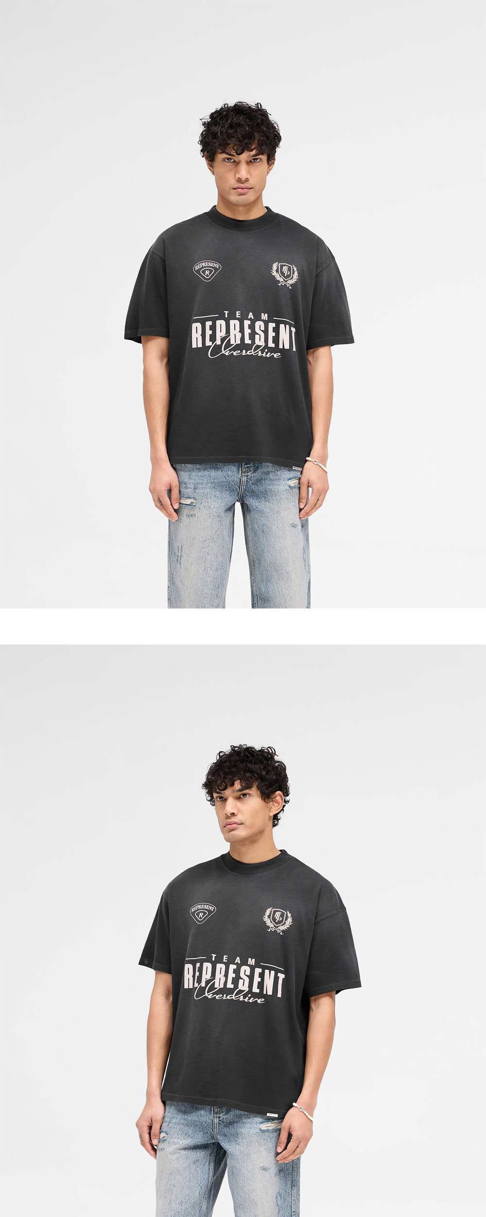 페이드 아웃 스프레이의 빈티지한 매력을 가진 리프레젠트의 월드 챔피언쉽 티셔츠 제트 블랙입니다. - 세미 오버핏 - 스크린 & 퍼프 프린팅 그래픽 - 페이드 아웃 스프레이 - 코튼 100% * 모델: 188cm 75kg, M 착용