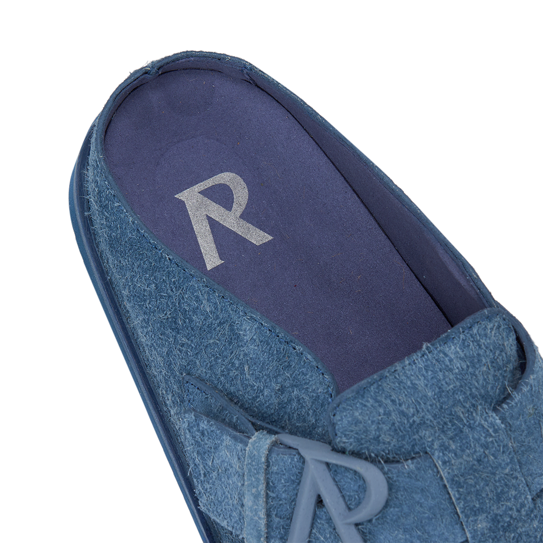 매트 파우더 코팅 메탈의 초털 스웨이드 갑피가 특징인 리프레젠트의 이니셜 뮬 스카이 블루입니다. - 스트랩의 이니셜 로고 - 편안함에 중점을 둔 몰드 풋베드와 깊은 힐 컵, 아치 지지대, 발가락 그립을 갖추고 있는 맞춤형 EVA 아웃솔 - 극세사 안감으로 풋베드를 마감하여 발의 미끄러짐을 제한 - 독보적인 블루 색감