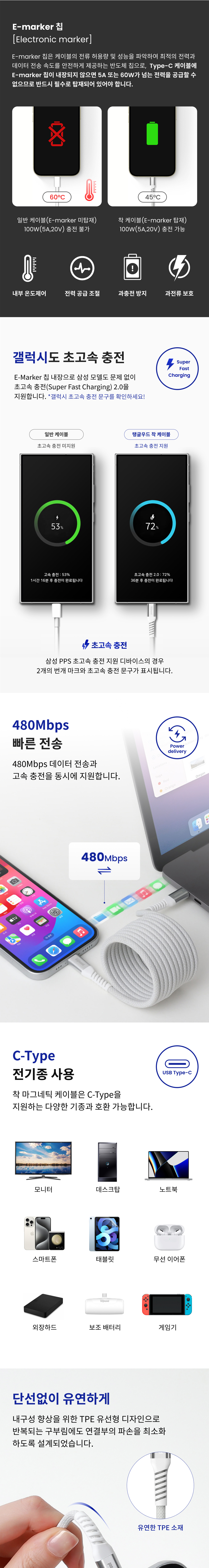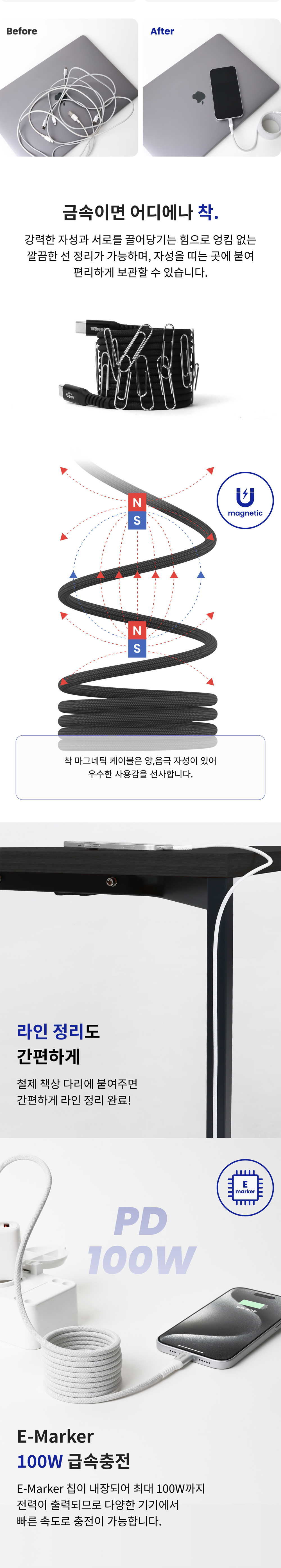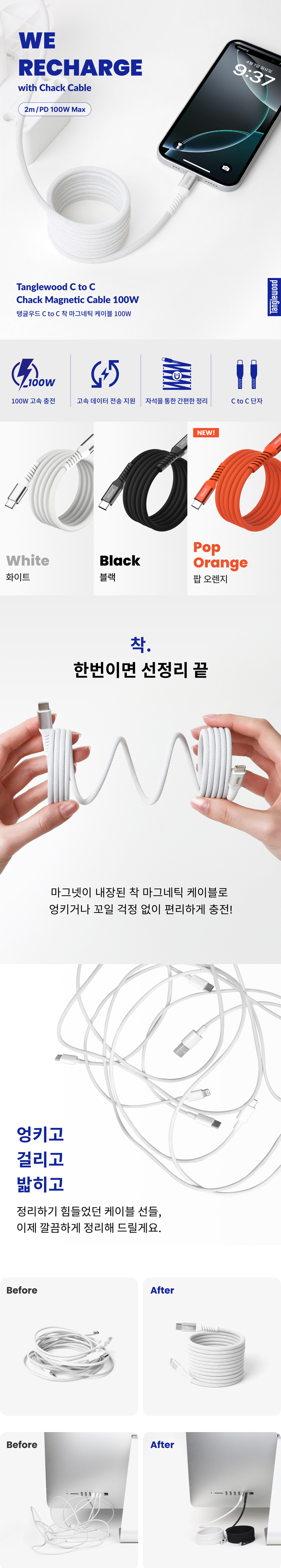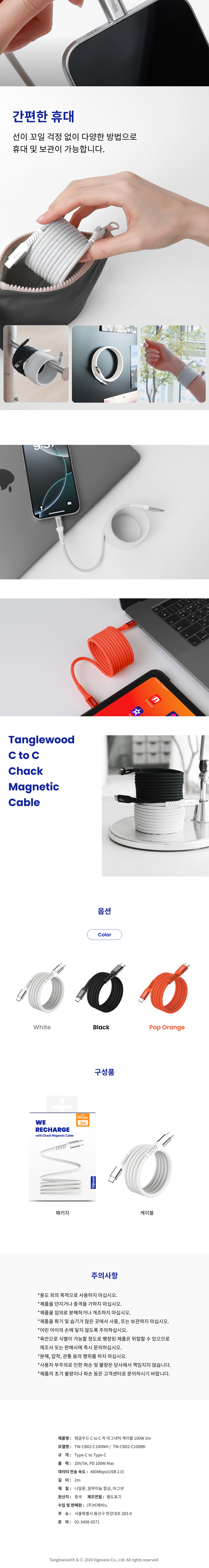 탱글우드 C to C 착 마그네틱 케이블 100W 2m 팝오렌지