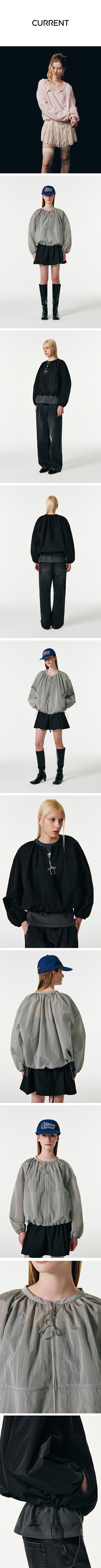 OUTSHELL -NYLON 100% - 넥부분에 셔링 디테일을 활용하여 페미닌한 느낌을 강조한 디자인 - 오버한 벌룬 실루엣으로 트렌디함을 강조 - 리본 쉐입으로 자체개발한 지퍼 장식 플러로 세련된 스타일링 가능 - 리본 쉐입으로 연출된 밑단 스트링으로 높은 완성도의 디자인 - 다양한 하의와 매치하여 입기 좋은 캐주얼한 아이템 - 로고 자수와 함께 디자인을 강조한 쉐입의 포켓 디테일 F 총장 63.5 어깨 58 가슴 76 소매길이 54