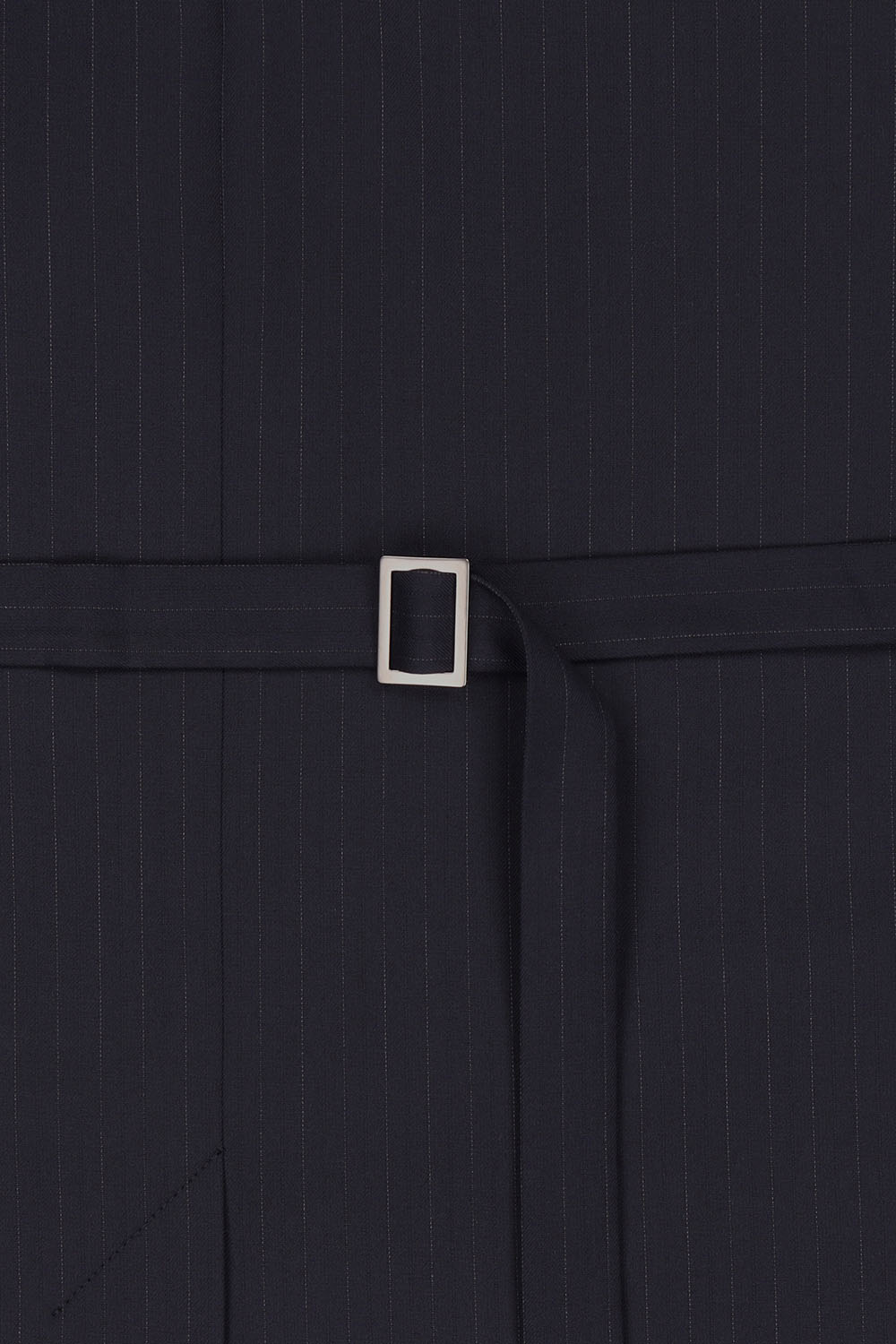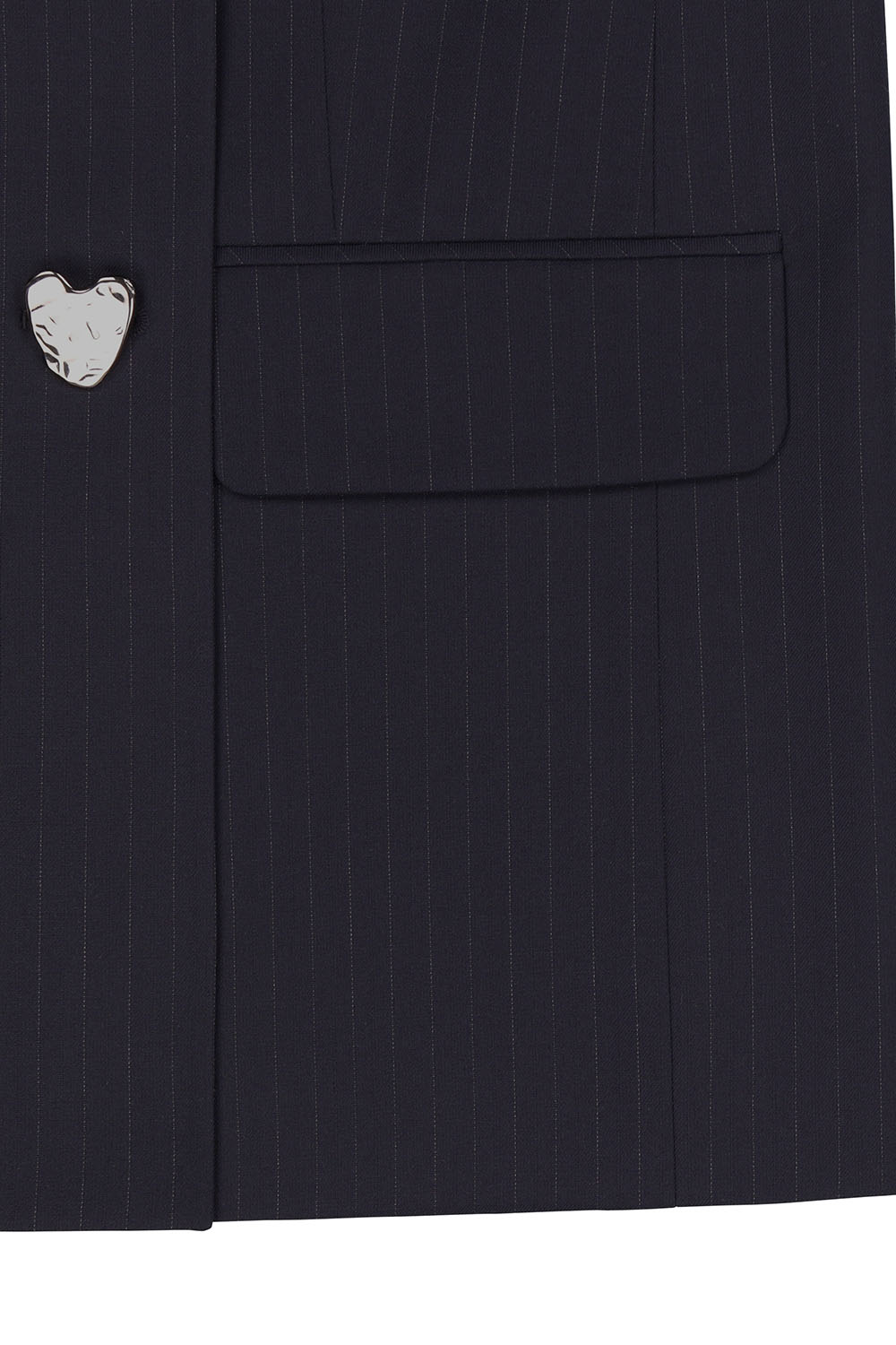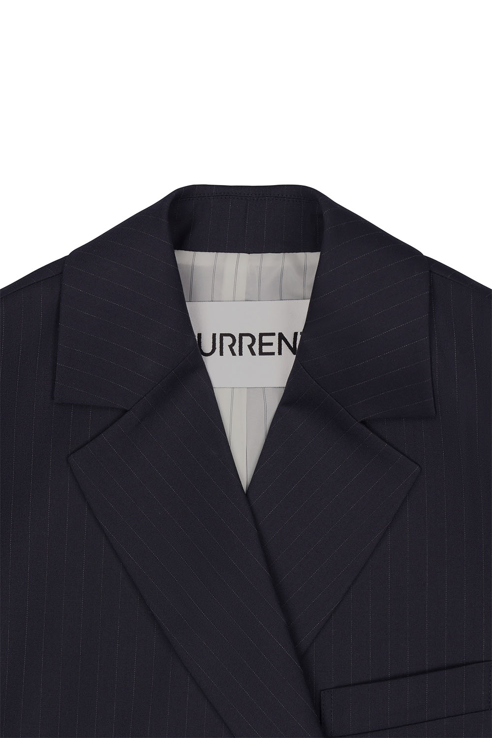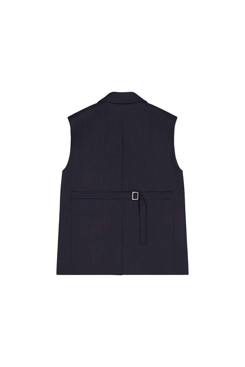 OUTSHELL - POLYASTER 69% RAYON 29% POLYURETHANE 2% - 은은한 스트라이프 소재로 세련된 무드의 자켓 베스트 - 고급스러운 무드를 선사하는 더블 브레스티드 디자인 - 실용적이면서 모던한 플랩 포켓 디자인 - 여유로운 오버사이즈 실루엣 - 숄더에 내장 된 패드로 안정적이면서 무너지지 않는 숄더 쉐입 연출할수 있습니다. - 이너 아이템들을 활용하여 다양한 스타일링 가능합니다. F 총장 75 어깨 46 가슴 53.5